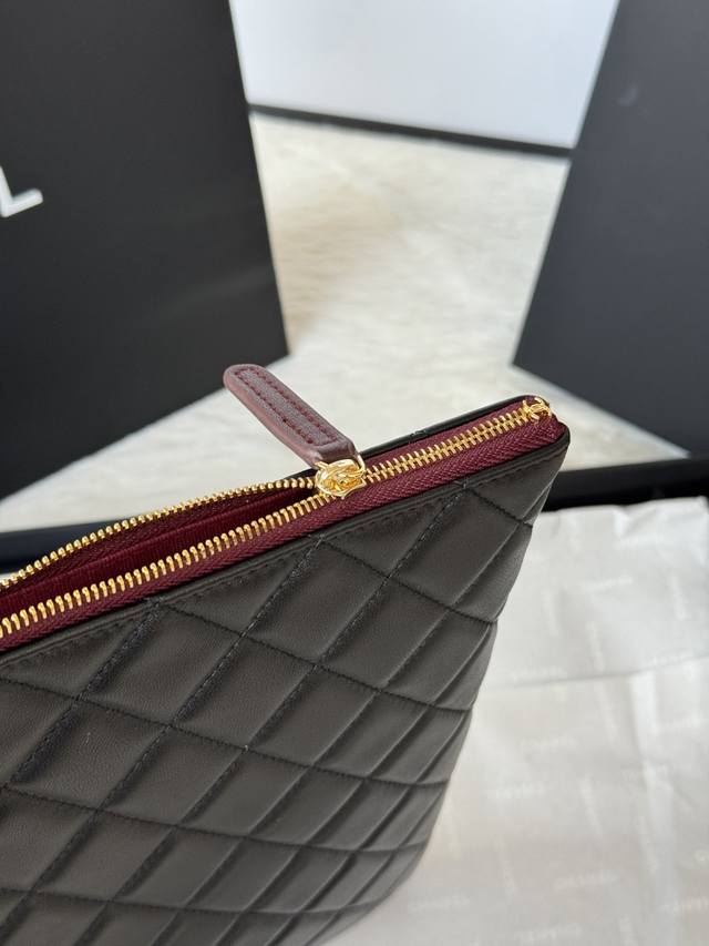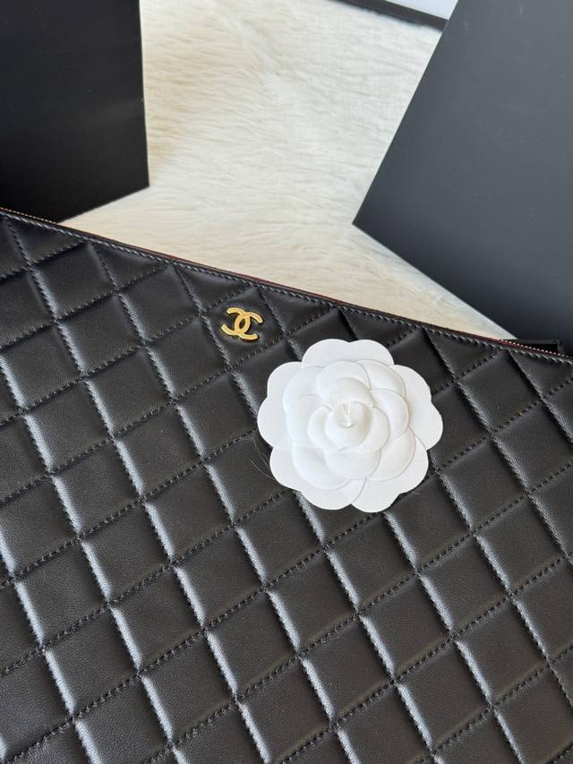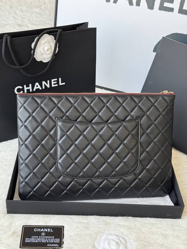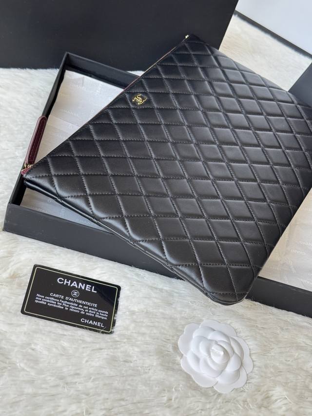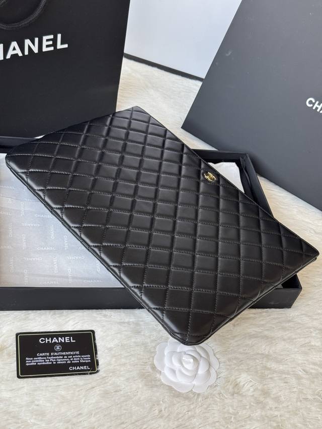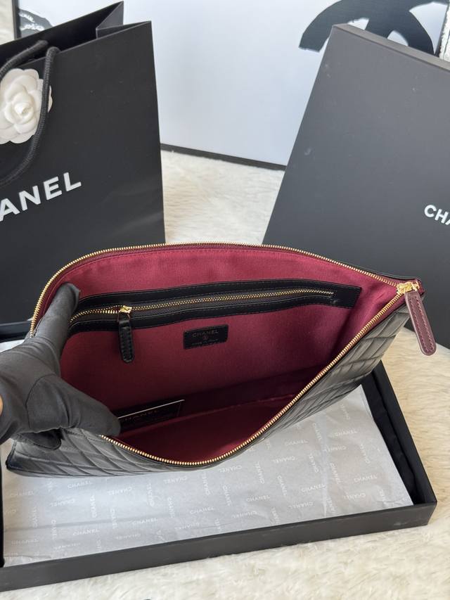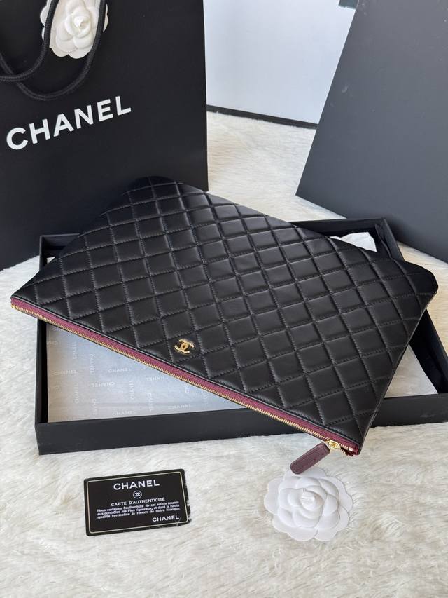 Check out this authentic Chanel clutch collection. Made from lambskin, this diamond-patterned clutch features a classic large zippered pocket for important documents. This practical, must-have bag can be casual, formal, casual, or stylish, seamlessly adapting to any occasion. It's the ultimate no-regrets, practical bag of choice. Item No.: 9845. Dimensions: 35x24x1.5cm.