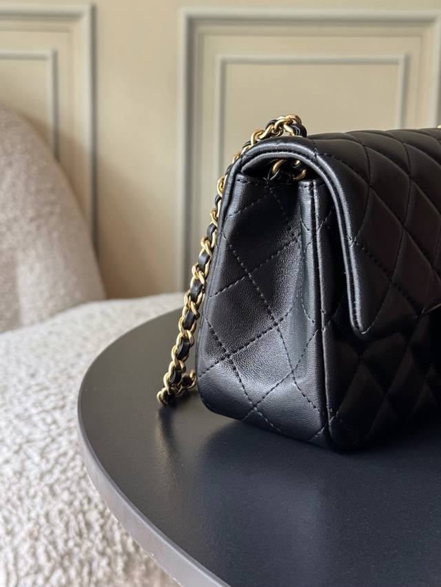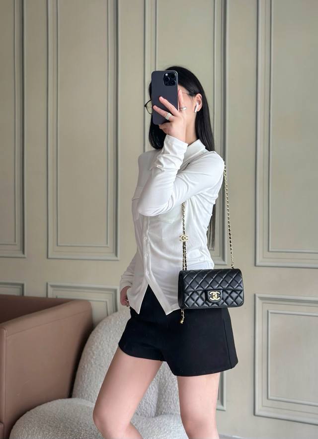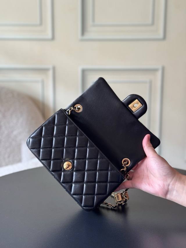 Double Logo Mini 20Cm Ohanel25B Double C Adjustable Buckle Square Fat Bag, a retro double logo chain bag with irresistible charm and stunning looks! A long-time Chanel bestseller, this bag is made of retro-style glossy lambskin, possessing both the soft and delicate appearance of lambskin and the durability and easy care of cowhide. The distressed vintage hardware, smooth glossy leather, and delicate double-adjustable logos at both ends of the chain, along with the adjustable chain, allow for various styling options. The bag has a square shape and can be worn as a shoulder bag, crossbody bag, or handbag. Dimensions: 20X13X7Cm Leather: Original Lambskin Style Number: 5759