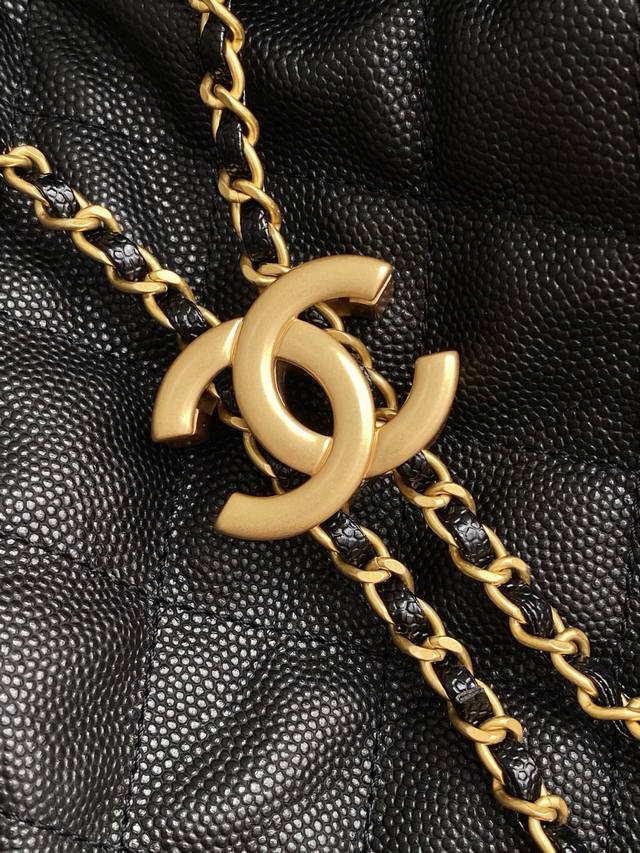 Retro gold coin button drawstring bucket bag + diamond pattern + retro black gold