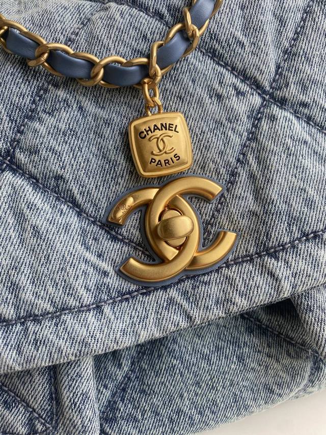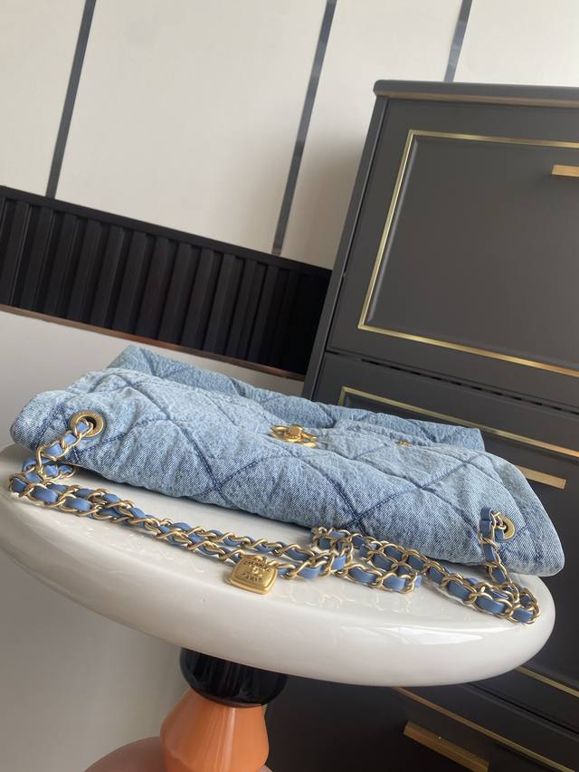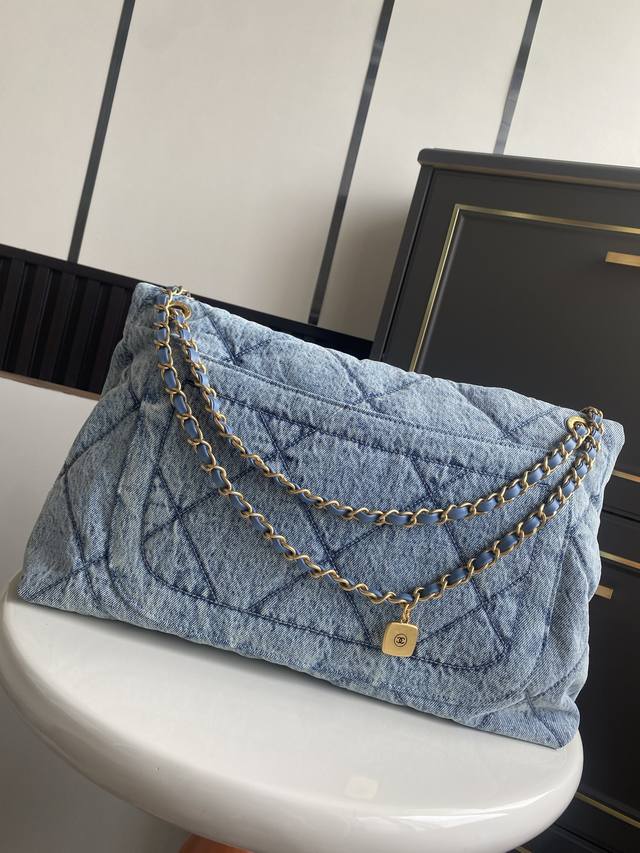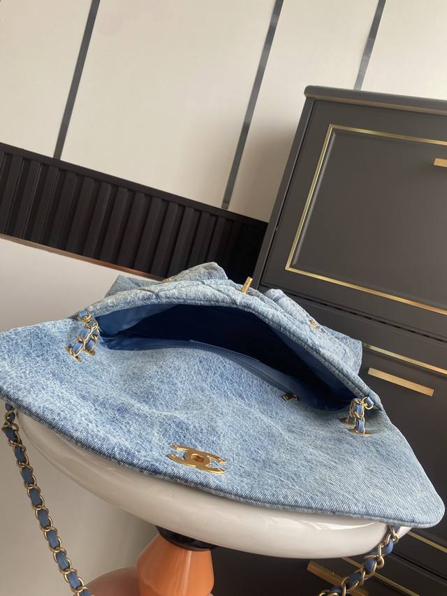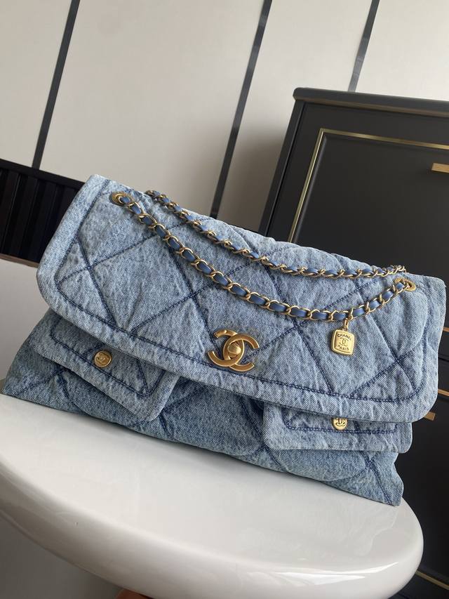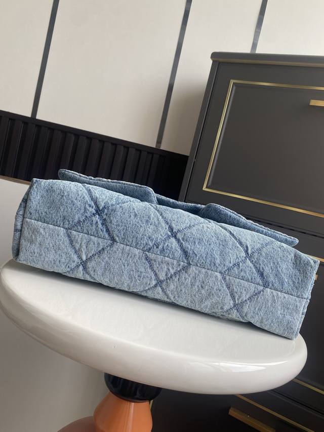 In Stock ~ Denim Chanel 25K Fall/Winter Limited Edition Shopping Bag - Exuding Luxury! So tempting! The denim paired with gold-tone metal double pockets and a vintage chain pendant adds a touch of modern style. The classic quilted design is both retro and elegant, while the gold double C logo on the large flap adds a touch of sophistication. It has a classic feel yet a fresh touch. The soft, smooth leather is luxurious and elegant, very practical, and has a large capacity. It looks amazing on! Style Number: As5727 Dimensions: 26.5