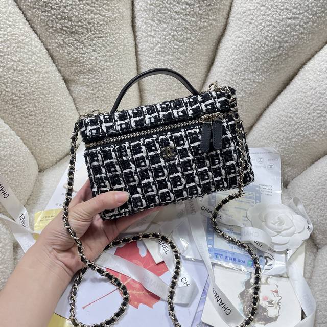 Matte Fabric!! Fashion New Darling: Chane 125C Spring New Arrival 554487. Exquisite and compact chain clutch bag in calfskin with a gold-tone metal handle and a small logo. A curved stitch on the leather surface makes the bag look more sturdy. The pebbled leather surface is also not easy to scratch. The chain is detachable and can be carried by hand. The capacity is also just right. The unique design and practicality have made it my recent favorite. Dimensions: 17