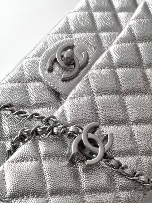 Small DDD Medium DDD Large 5756 Large Chanel 25B Double C Adjustable Buckle Square Fat Bag, a retro double logo chain bag with a small pom-pom pattern. It boasts a soft and delicate pom-pom texture, adorned with small, exquisite details on both ends of the chain. The adjustable chain allows for various styling options. The bag has a square shape and can be worn as a shoulder bag, crossbody bag, or carried by hand. Dimensions: 14.5 x 23.5 x 7 cm. DDD