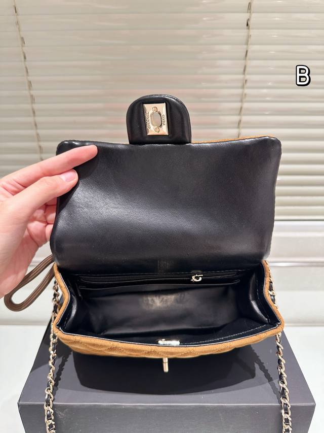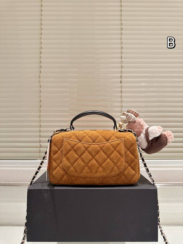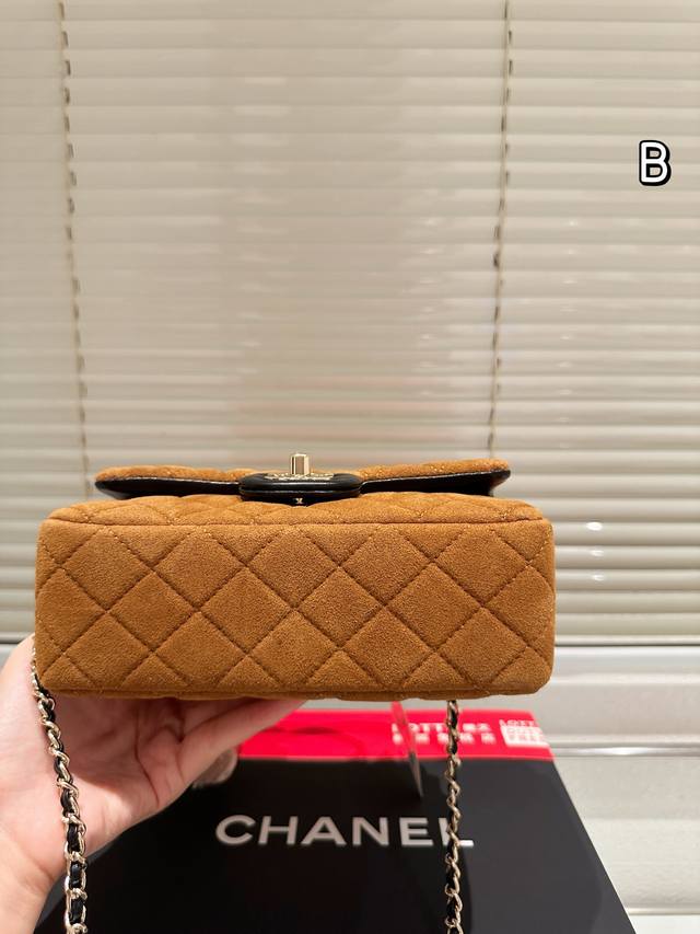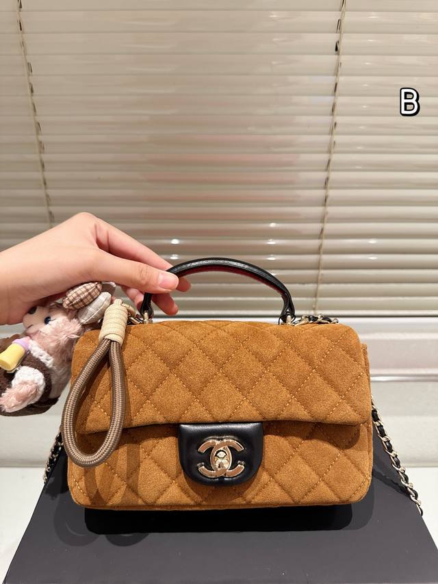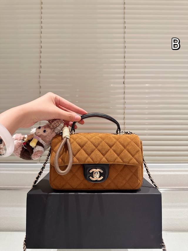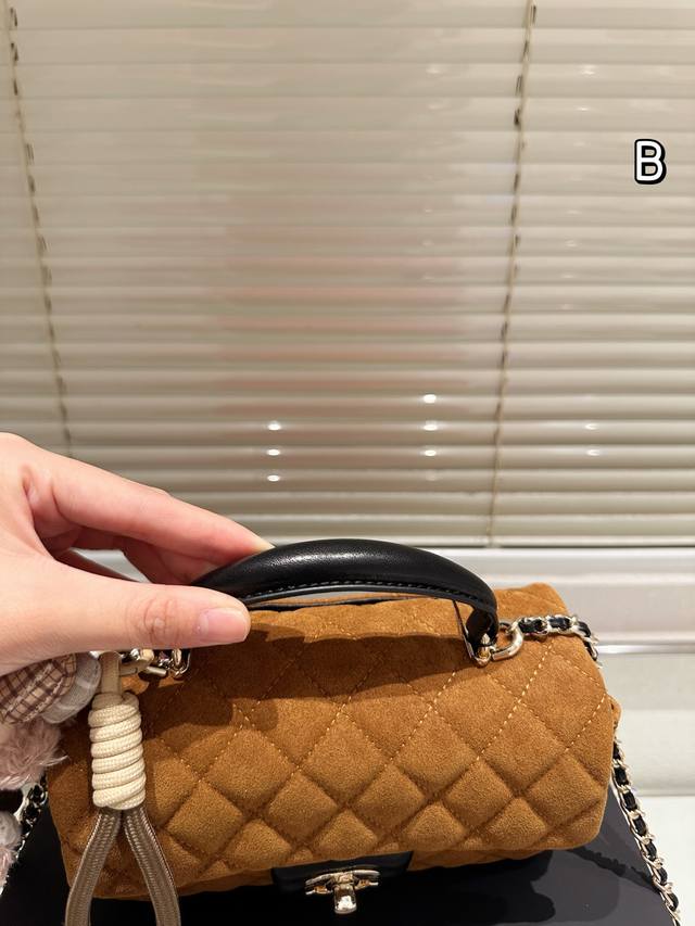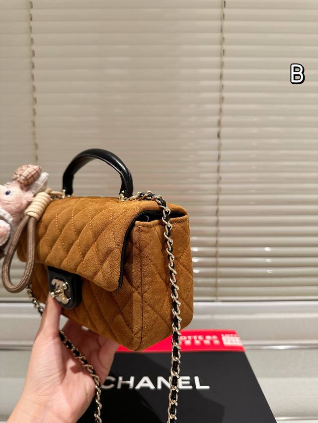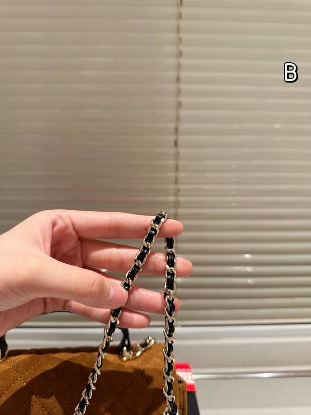 Suede with charm Chanel 22B metal handle Mini. The new metal handle Cf Mini is truly stunning, featuring the metal double C logo. A timeless classic.