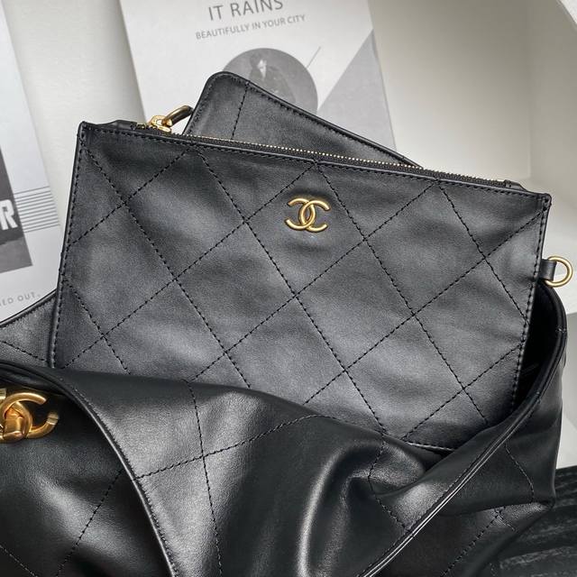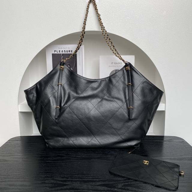 The Chanel 25S Maxi Hobo Bag, a runway hit, is the same tote bag G-Dragon wears. As5463. Calfskin leather with a metallic finish. Soft and spacious, it's perfect for carrying anything. It's a stylish pairing for a casual look, perfect for a stylish outfit. The bag's shape is both relaxed and casual. Big bags are the most stylish. Dimensions: 36 x 59 x 13 cm.