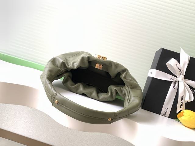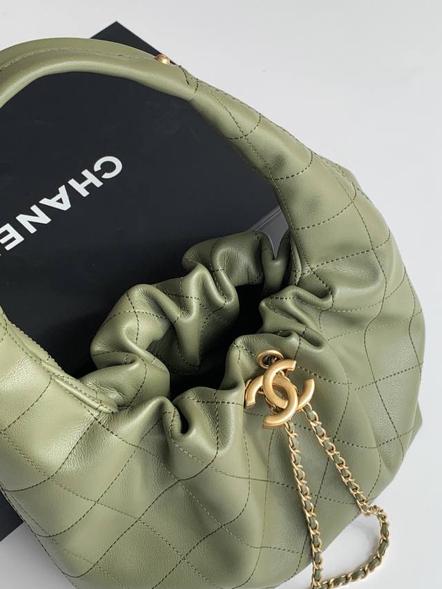 The Chanel 26C Hobo handbag is a new addition to the 2026 Resort collection. Made of supple calfskin, it boasts a delicate feel and classic quilted stitching for a premium look. Features include a drawstring closure and a double-C metal clasp. Details are impeccable. Style number As5976. Dimensions: 32-24-12. Comes with packaging.