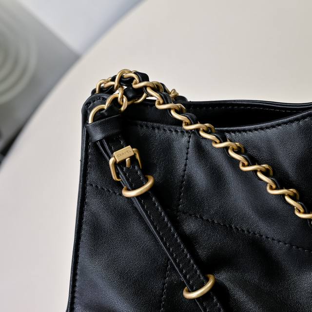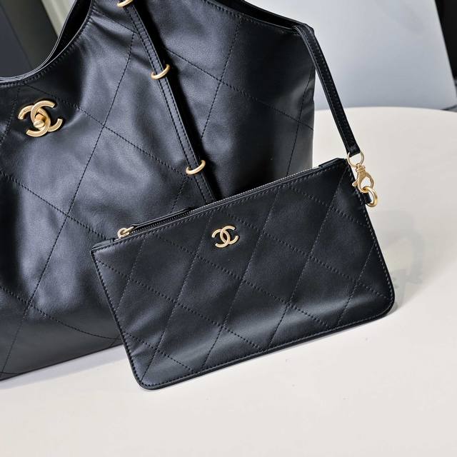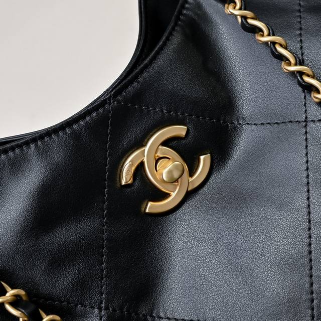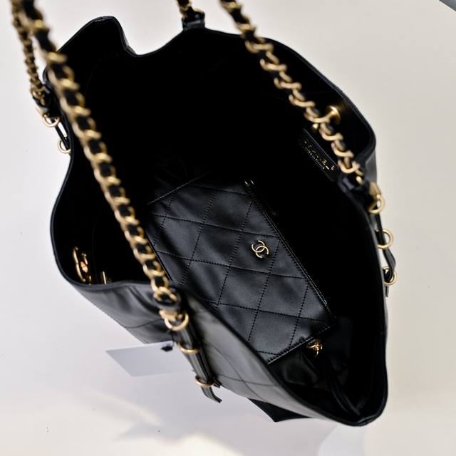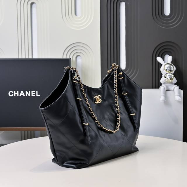I really want to praise this contrasting design! The geometric quilted pattern paired with the metal chain creates an elegant look straight out of a 90s runway, and the interior is also incredibly spacious! Available in two sizes, it can easily fit a laptop and umbrella for commuting, or a tripod and camera for shopping. It's both stylish and practical!