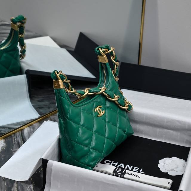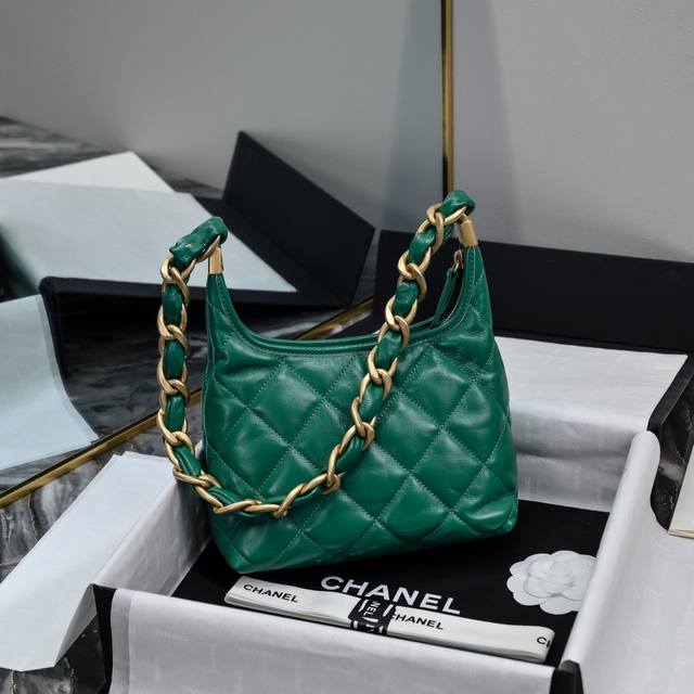 The top-of-the-line, original Chanel*24A Hobo in a small size just keeps getting better and better! Another hit, this retro-inspired style is so instantly appealing, so get ready! This is a truly sophisticated underarm bag! The rough leather and chain look so stylish, and the overall look is so lightweight, casual, and laid-back