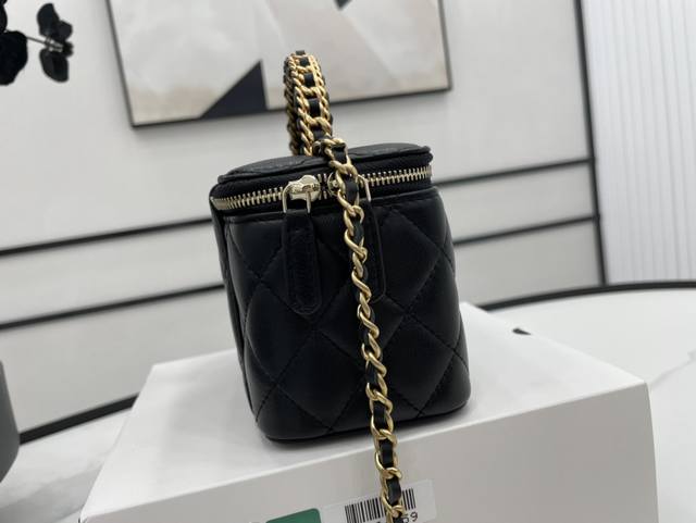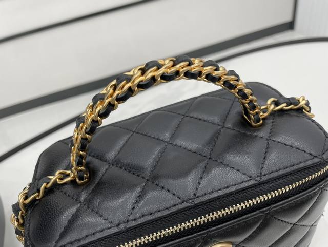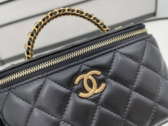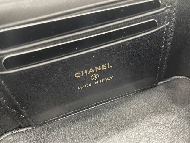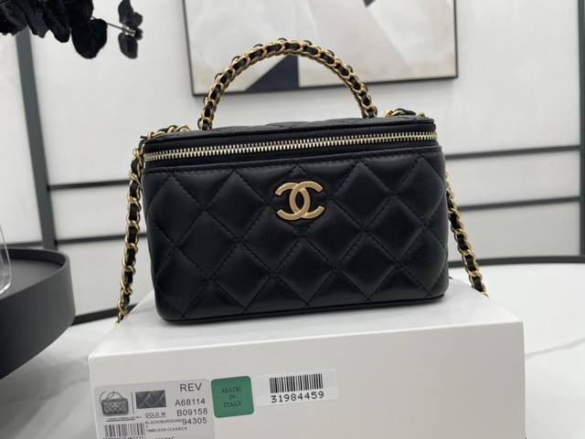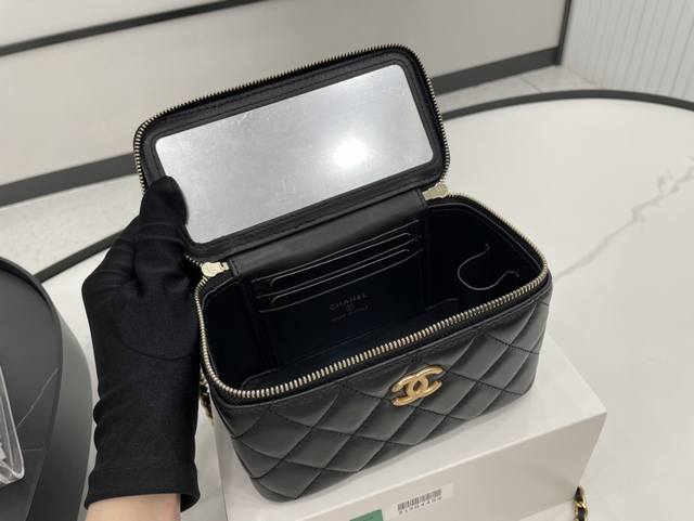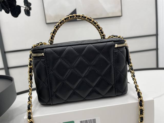 Top-quality old factory A68114 Chanel 22 new style, square box with black and gold lambskin leather and gold chain, retro hollowed-out gold leather handle, super beautiful steel stamp design. Dimensions: 17*9.5*8Cm.