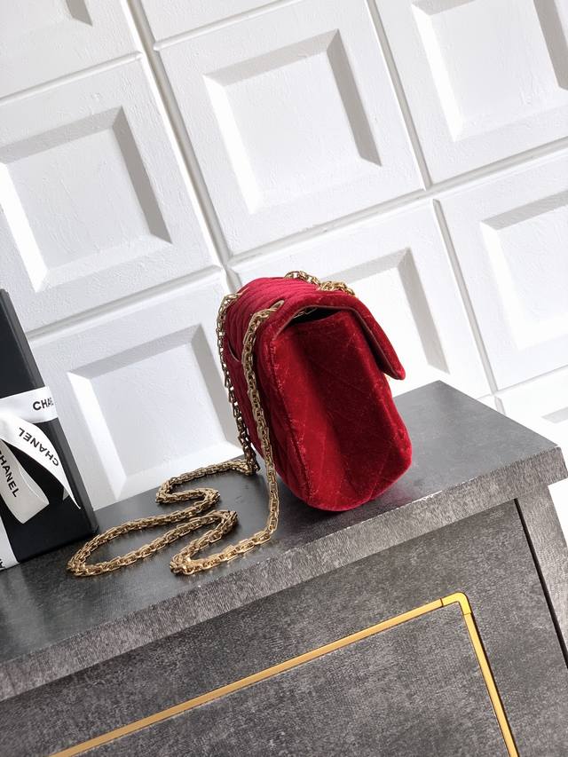 Top-quality original bright red Chanel 552225A velvet black upgraded version 20cm mini F replica. Made of black and gold Italian satin Montebello cowhide, this bag exudes authentic charm! Its name evokes its creation: the first chain handbag designed by Mademoiselle Chanel in February 1955! Its unique quilted leather and square lock clasp are a landmark classic in the brand's history! A lovely new addition to the Chanel velvet bag collection. This bag is actually a square bag, crafted from silk tweed and paired with a light-colored chain, creating a charming, carefully crafted look. The chain is non-adjustable, giving it a vintage feel that makes it truly stunning. Sizes: 15.5x20x6cm