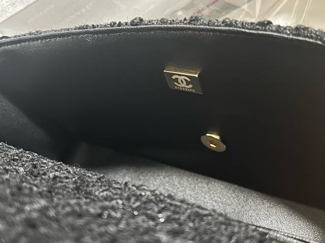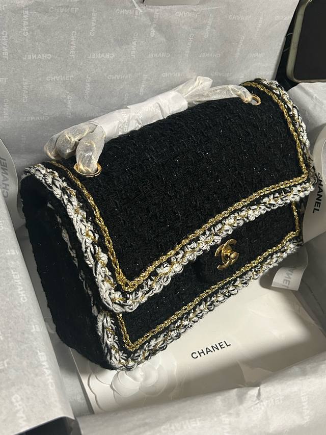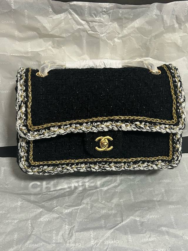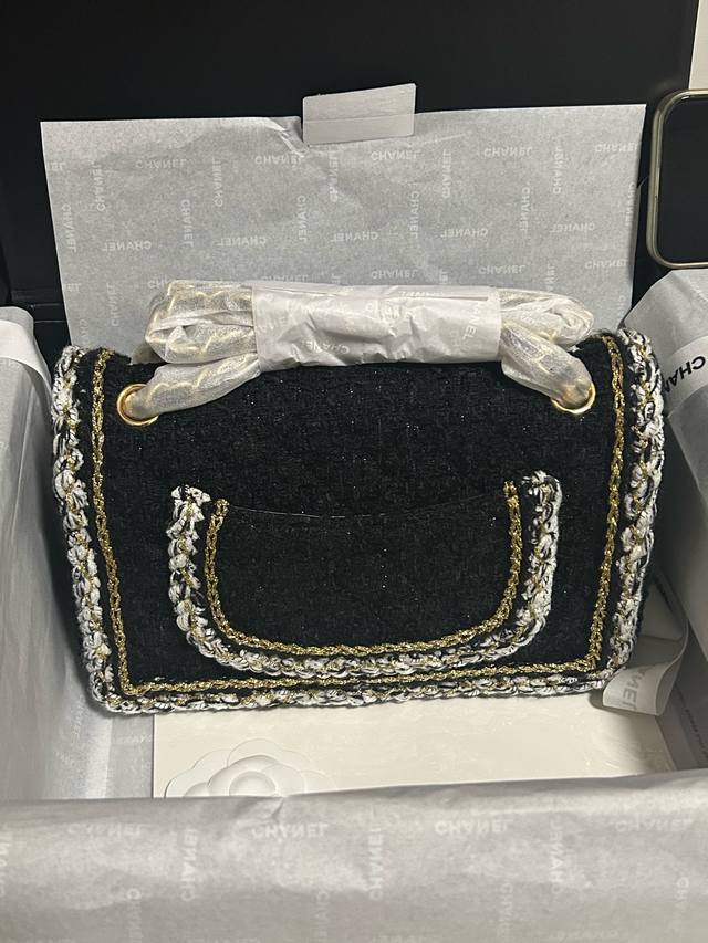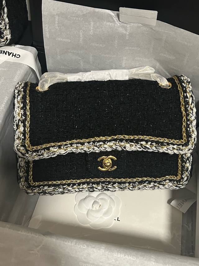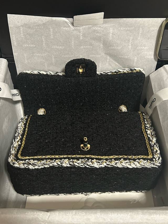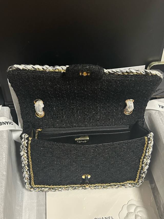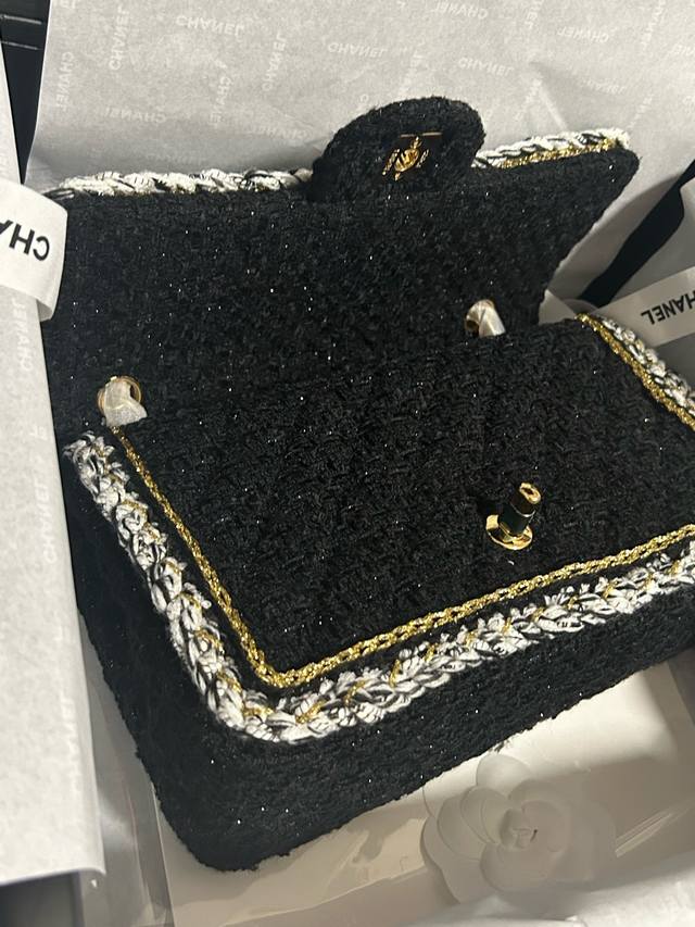 Top-quality original Chanel 25B Fall/Winter limited edition black tweed with ribbon, large size 25cm DDD