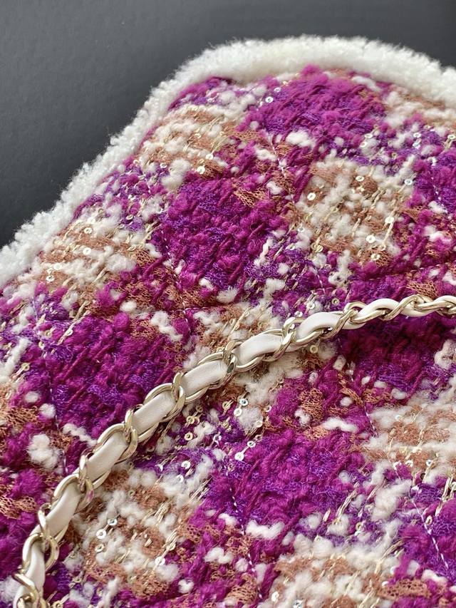 Top-tier replica Chanel 25N tweed handbag DDD The Chanel 25N tweed handbag is a limited-edition Fall/Winter piece from the Coco Neige ski collection. Made of soft and warm purple and white checkered tweed, it exudes a wintery vibe. The white leather handle and metal chain shoulder strap make it versatile enough to be carried by hand or crossbody! The double C logo on the front is highly recognizable. Limited edition, making it a highly collectible item. Perfect for everyday commuting or winter outfits, practical and stylish! DDD Style number As5688 DDD Size 24-33.5-11 DDD Comes with packaging DDD