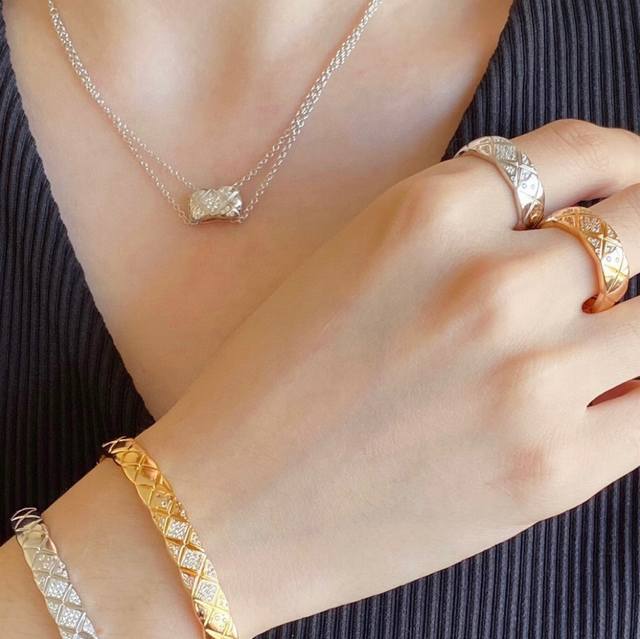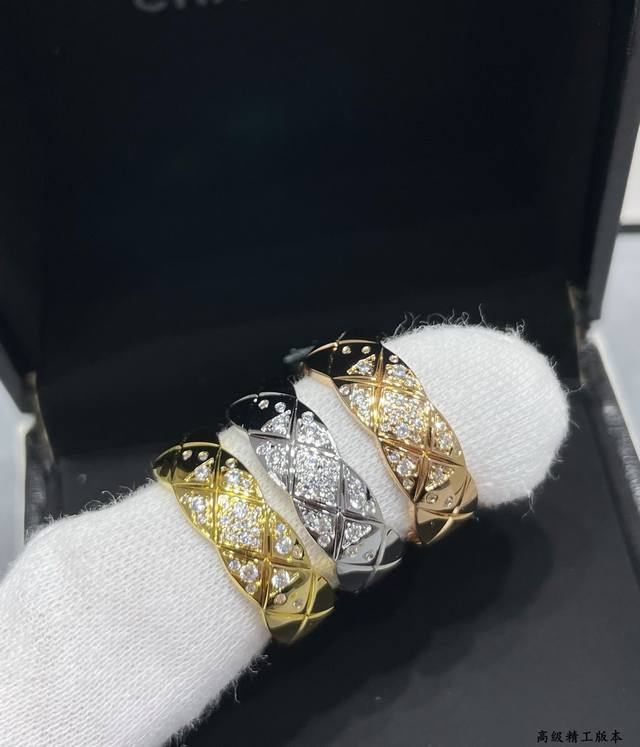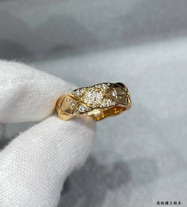 V Gold 8670220 Chanel wide diamond ring with fire code 5678. A popular Chanel classic diamond ring, sparkling imported zircon reflects the dazzling fire. The highest-end version on the market, with the classic Chanel logo and diamonds, a must-have