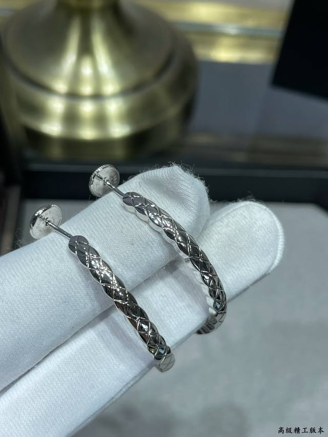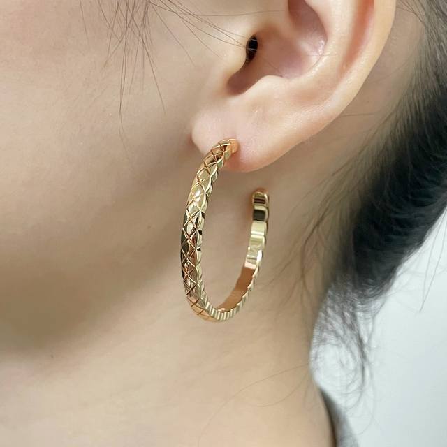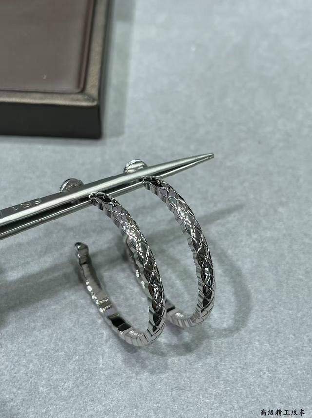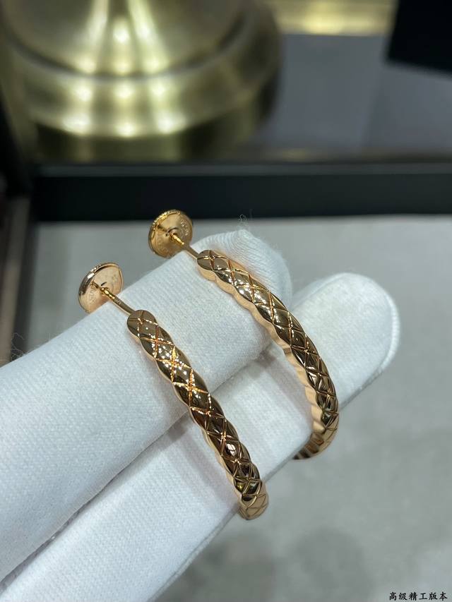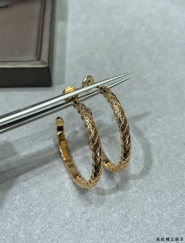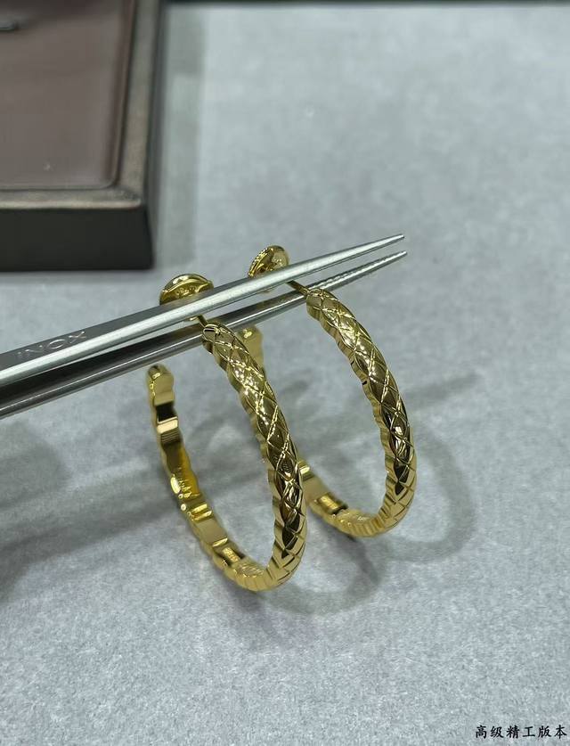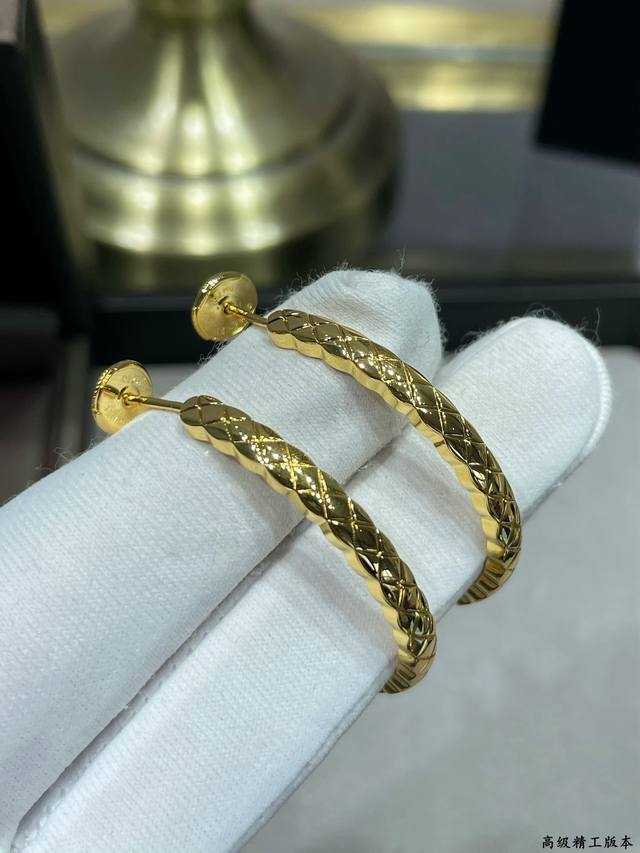 V gold material 5140250 authentic Chanel CNC carved large diamond polished earrings, Chanel classic diamond, hot selling model, the highest version on the market, must-have, super face slimming.
