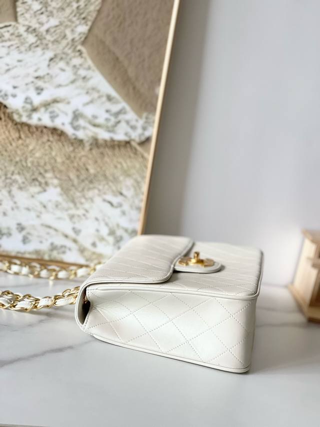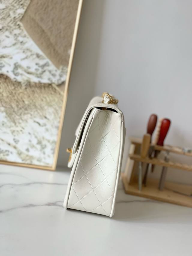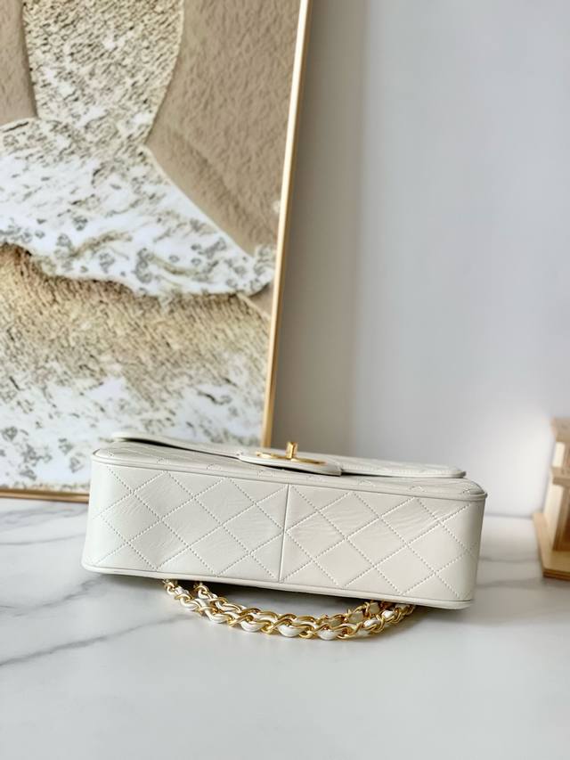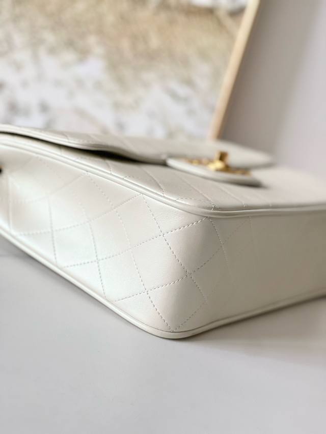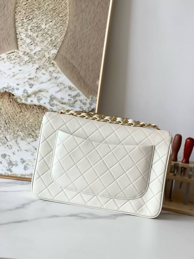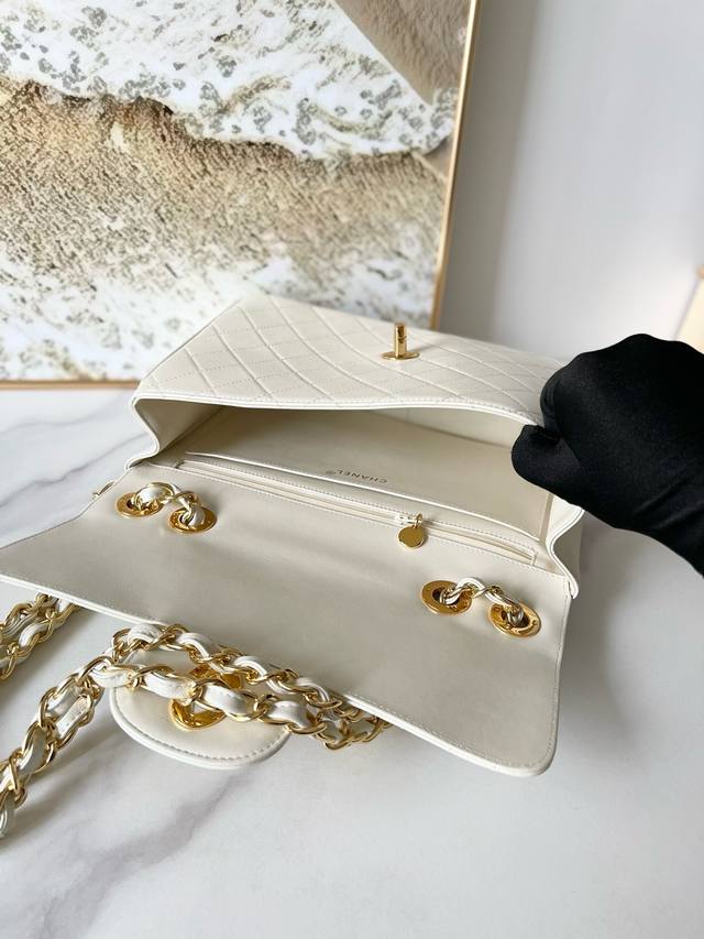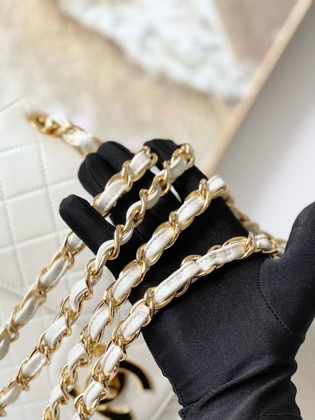 Victoria Beckham's Chanel Lambskin Pearl White Bag DDD Limited Edition Large Gold Buckle Bag DDD In Stock The Chanel Classic Flap Bag was a re-launch of Coco Chanel's design after Karl Lagerfeld took over Chanel in 1983, with slight modifications. It is also one of Lagerfeld's most proud founding works. This large CF (Clap Bag) is very popular among celebrities and bloggers. DDD Its highlight is the large gold-plated double C logo. The current boutique version of the CF no longer has this design; it only has a small double C. Victoria Beckham likes to shorten the chain of this bag and use it as a clutch. DDD It features a double-sided flap design and has a very large capacity for a chain bag. It is very lightweight and can be worn as a shoulder bag or crossbody bag. DDD It can also be shortened to make it a handbag. DDD Recommended to buy the Victoria Beckham bag. DDD Dimensions: 30 x 1.8 cm DDD Item No. A2222 DDD