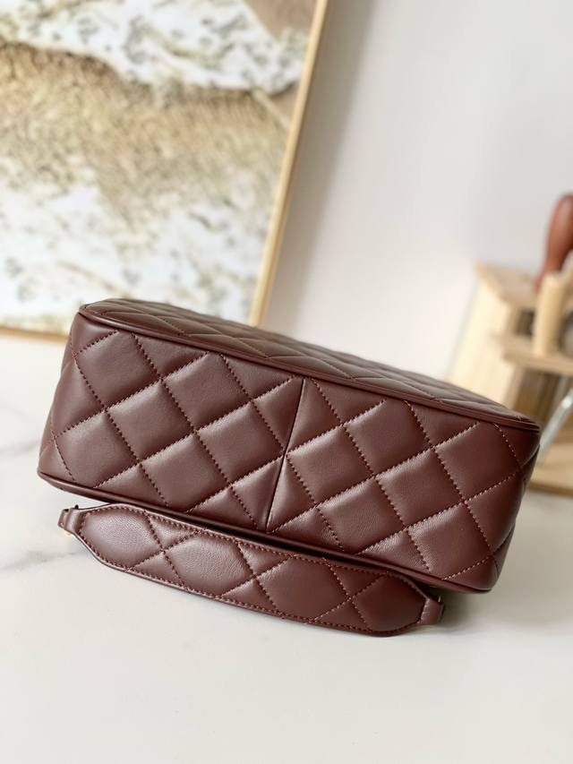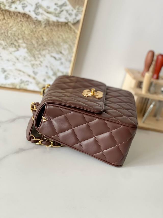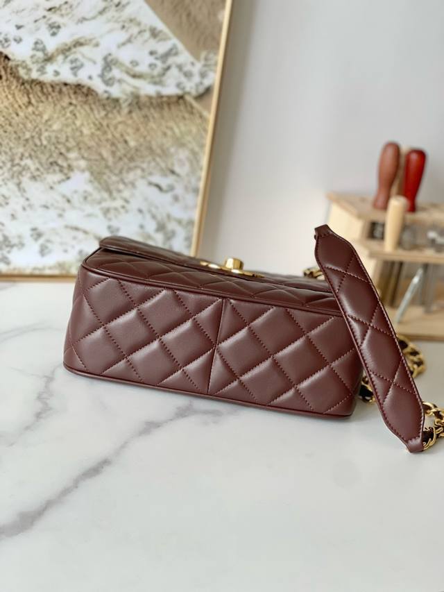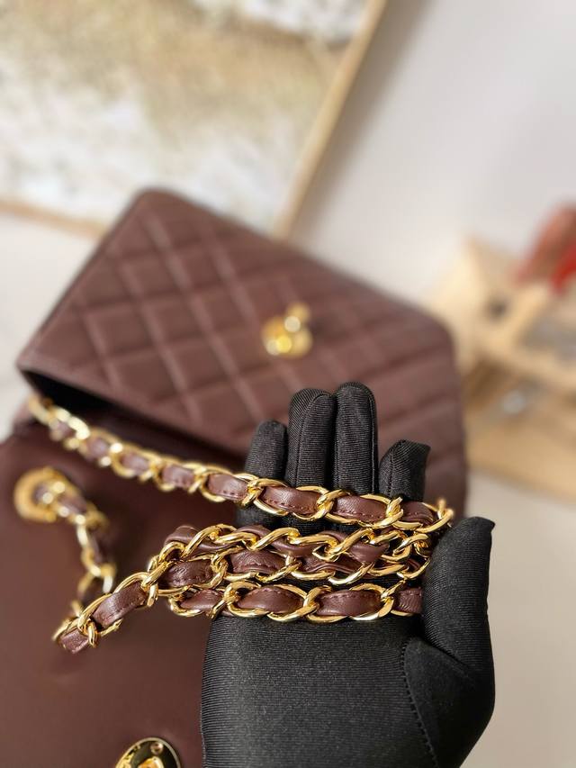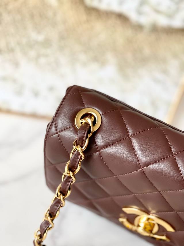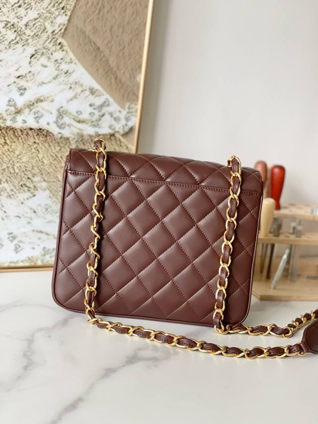 Victoria Beckham's style, brown lambskin DDD In stock Chanel vintage, rare large gold buckle Cf DDD The Ohanel Classic Flap Bag was a re-release of Coco Chanel's design after Karl Lagerfeld took over Ohanel in 1983, with slight modifications. It is also one of Lagerfeld's proudest founding works. This large Cf is very popular among celebrities and bloggers DDD Its highlight is the large gold-plated double C logo. The current boutique version of the Cf no longer has this design; they are all small double Cs. It features a flap design and has a very large capacity. It can be worn on the shoulder or crossbody, or the handle can be shortened to make it a handbag DDD Dimensions 25 20 9Cm DDD Item No. A2218 DDD Medium size, vertical brown lambskin DDD