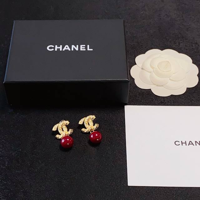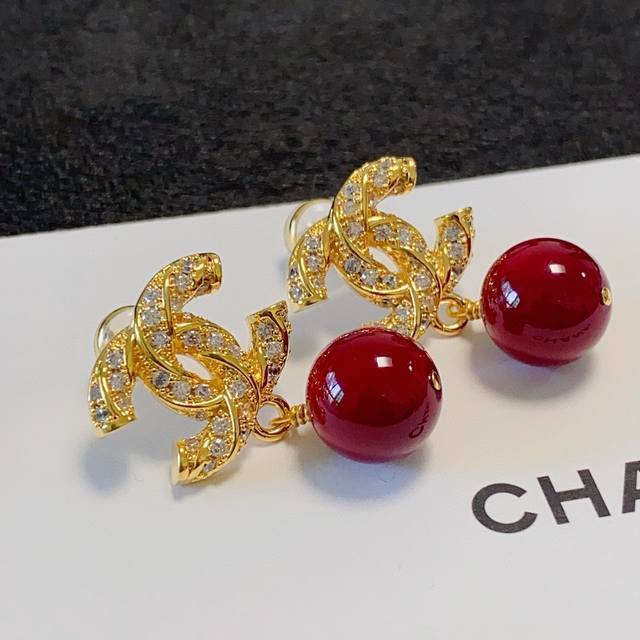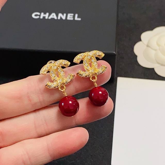 New Listing High-End Chanel Small Chanel Double C Simple New Year Red Diamond Red Pearl Pendant Earrings This Earring Is Really Super Beautiful Looks Simple Design But The Wearing Effect Is Good To See The Explosion Even My Small Earlobe Is Also Very Ok Z Wear Ear Super Temperament Elegant Suitable For All Occasions