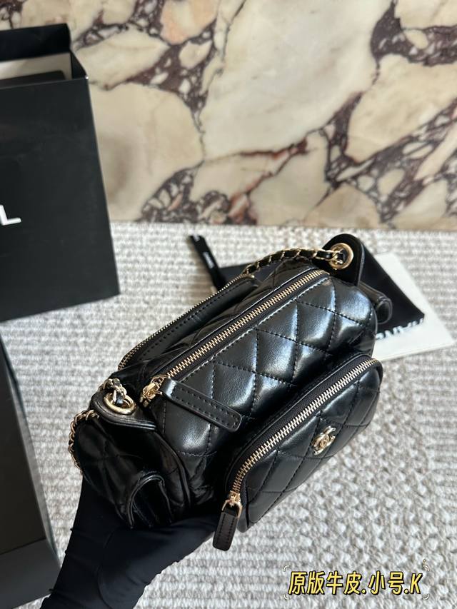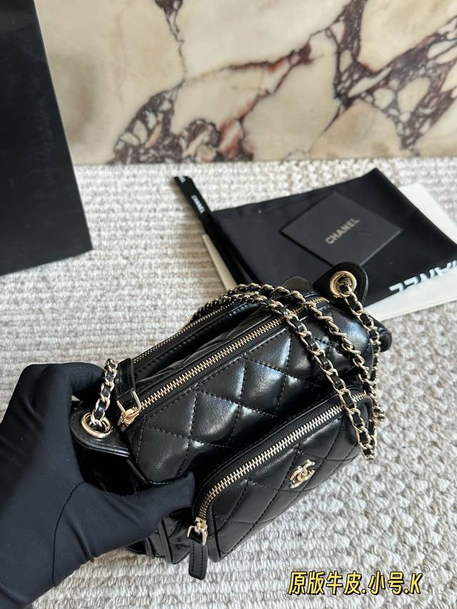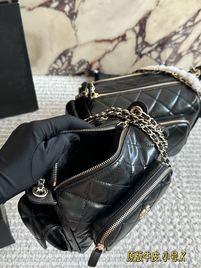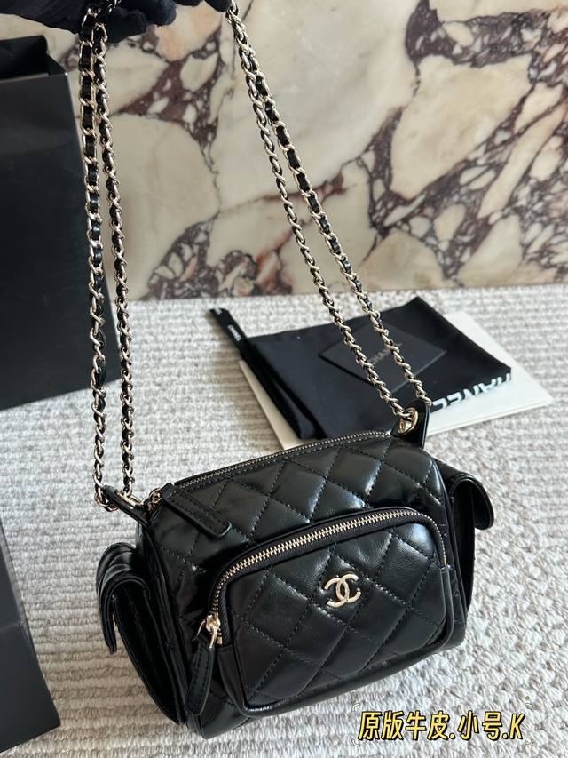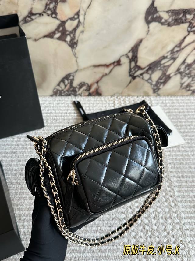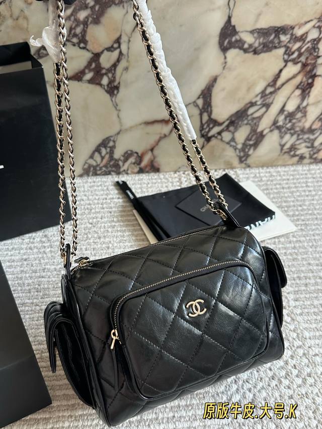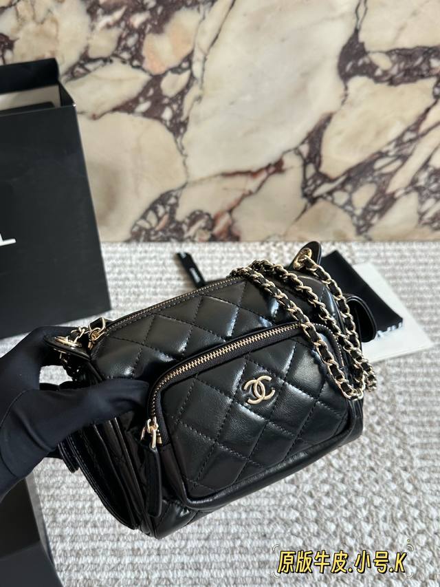 Chanel camera bag, DDD Camera bag or bowling bag? DDD It has pockets on the front, back, left, and right, and the capacity is more than enough. DDD Although it's made of cowhide, it doesn't feel delicate at all. DDD Before buying, I was worried it would look like a drum bag, but the actual product is really beautiful and has a completely retro and fashionable feel. 18cm 22cm double box packaging. DDD