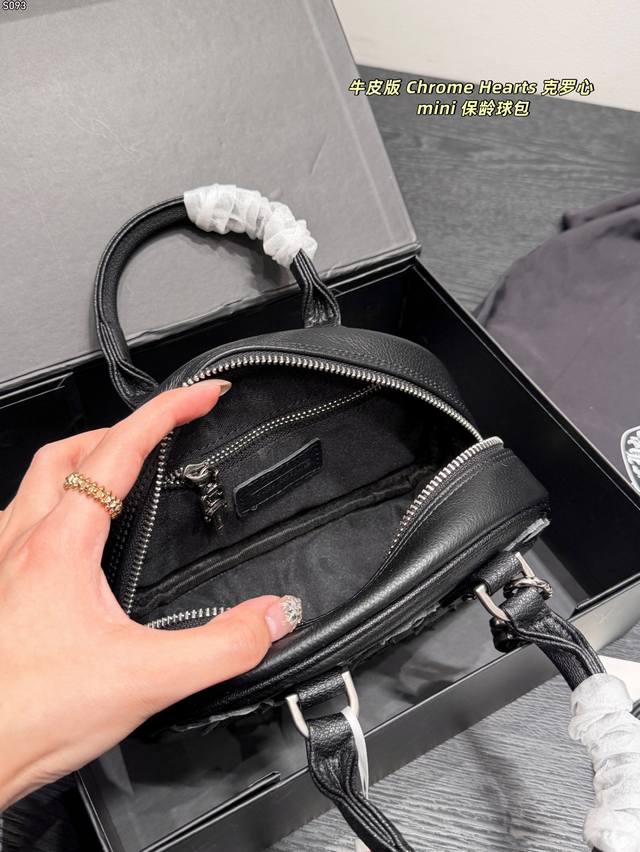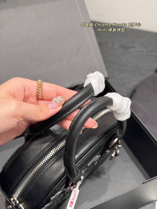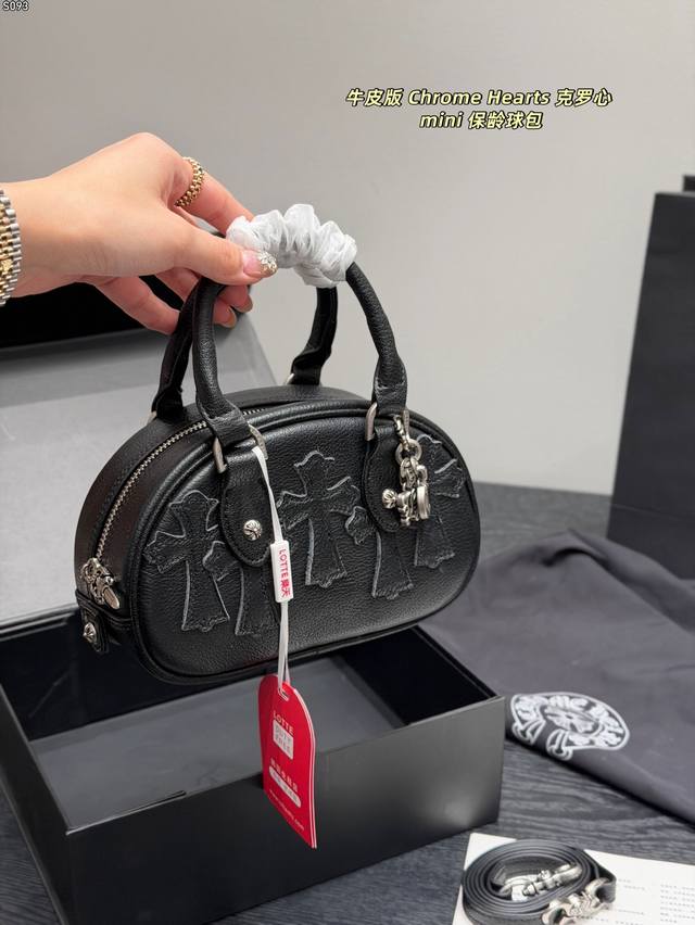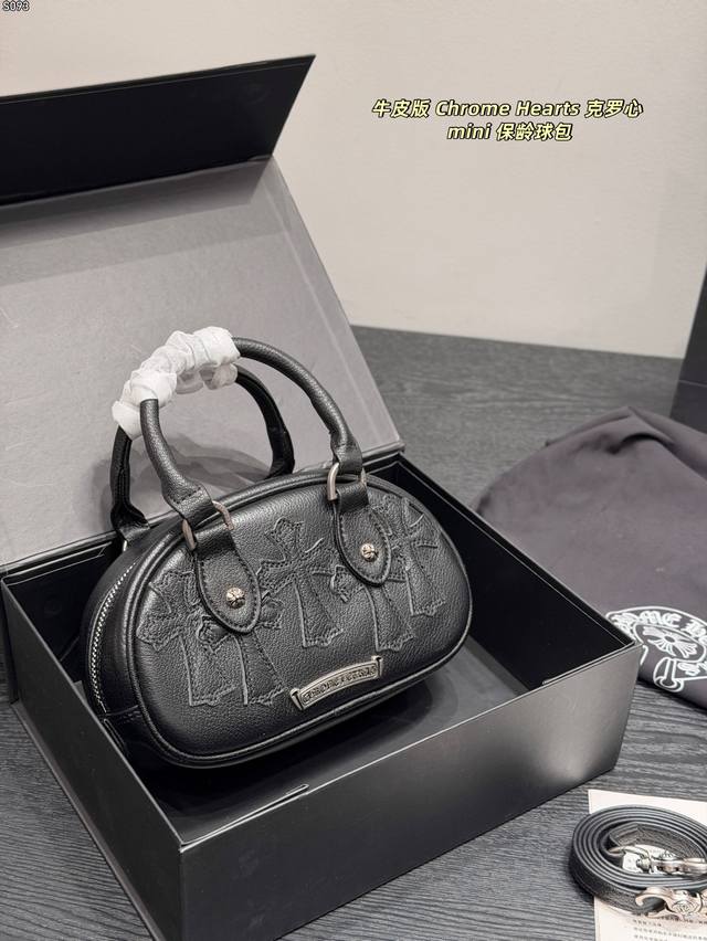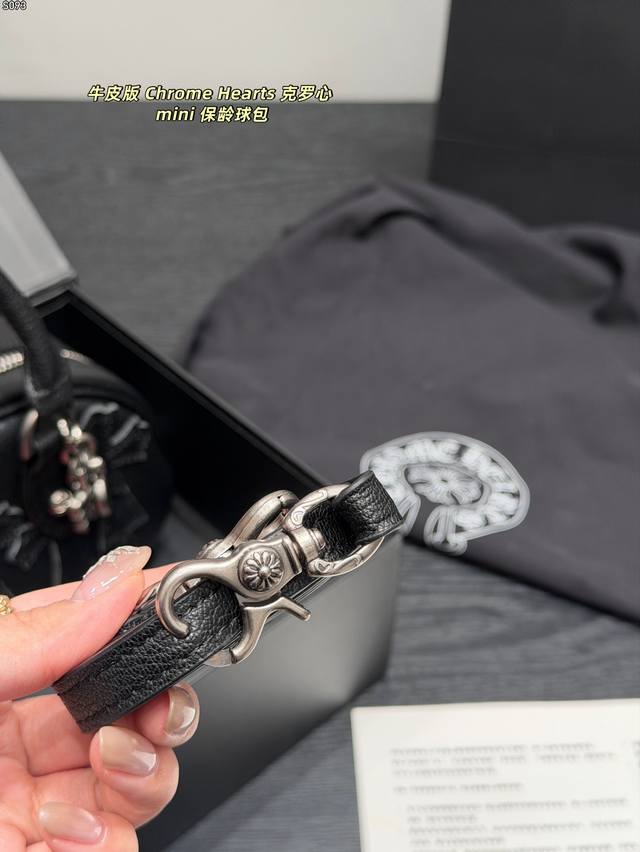 Gift Box Packaging Ddd Cowhide Version Ddd Size: 20*13Cm Ddd Chrome Hearts Classic Black Bowling Bag Mini Ddd Mini Bowling Bag is so versatile~ I fell in love at first sight Ddd The hardware is so beautiful, and the workmanship is very exquisite Ddd