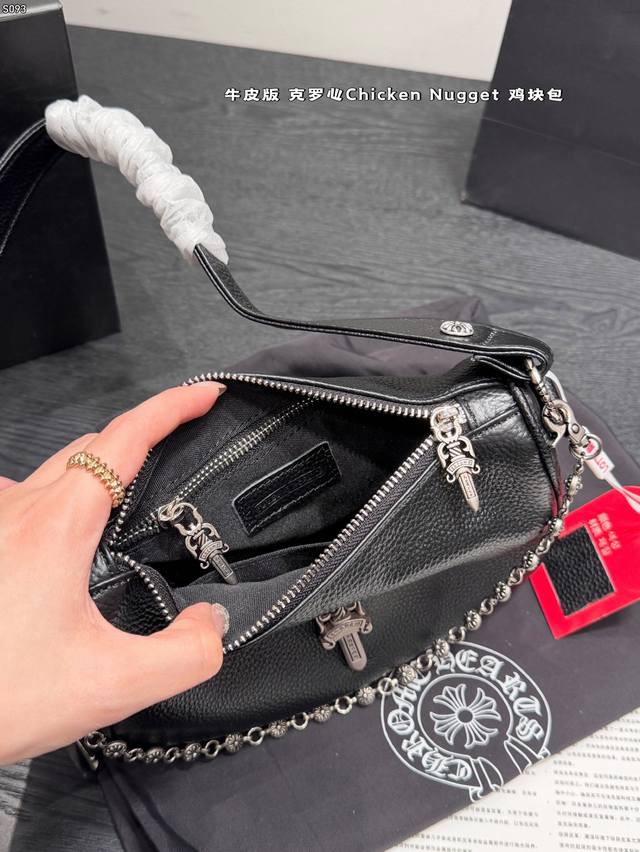 Gift Box Packaging Ddd Genuine Leather Chrome Hearts Chicken Nugget Bag is here!! Ddd This chicken nugget bag is key! Ddd Its unique dark style, seen on many celebrities, and is incredibly hard to buy! The key is its casual bag shape~ Ddd The naturally drooping drape is so effortlessly chic! Add to that the vintage sword-shaped silver embellishments, and it's absolutely the bag of your dreams. Ddd Size: 22*16cm DDD