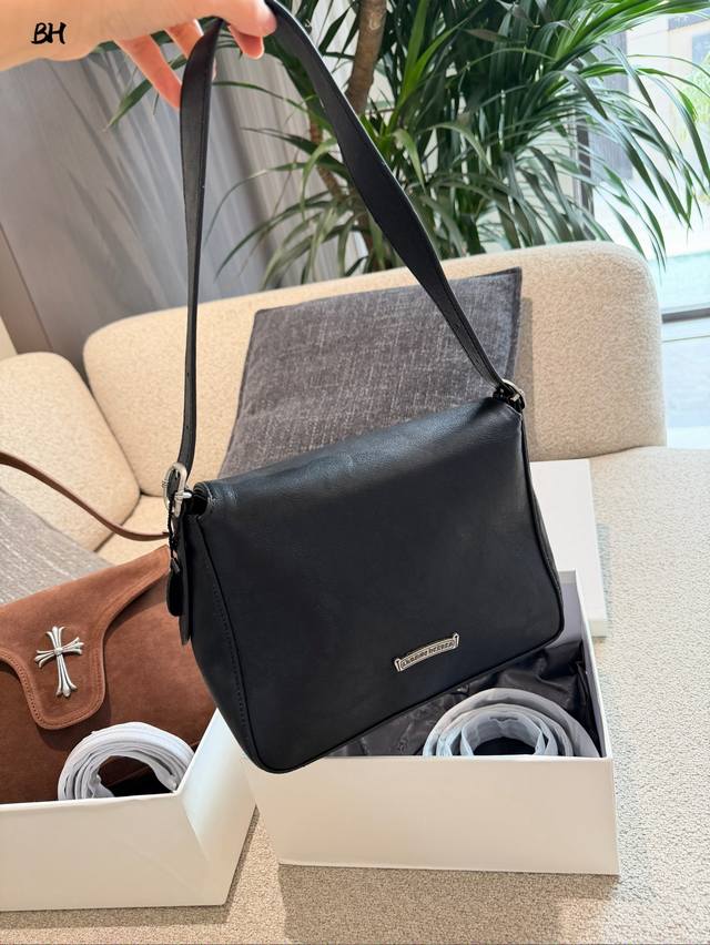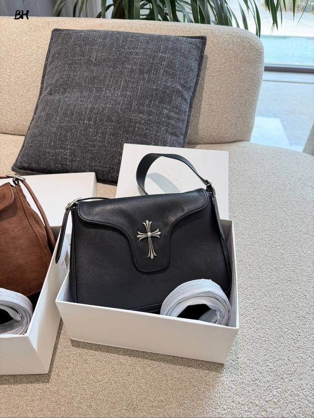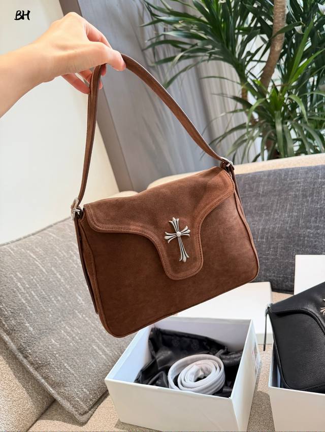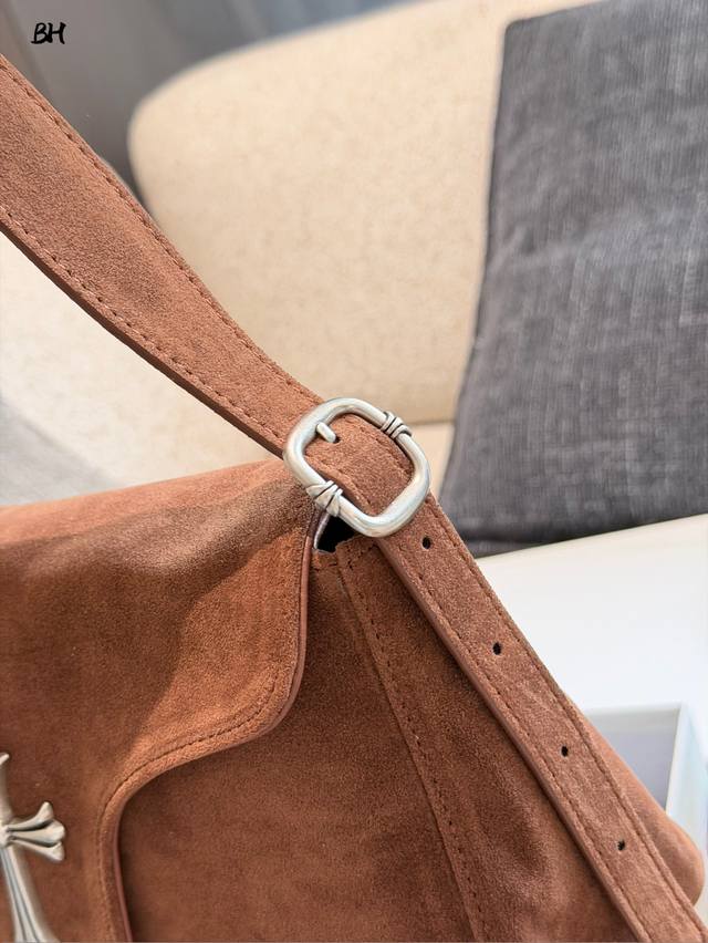 Chrome Hearts Cross Flap Chicken Nugget Bag DDD This Chrome Hearts cross flap chicken nugget bag is made of soft and delicate black suede. It features the iconic cross metal clasp, making it highly recognizable. The flap design and magnetic closure make it convenient and secure to access your belongings. The moderate size and adjustable shoulder strap allow for both shoulder and crossbody wear. It's versatile enough for everyday outings and street style looks, offering a simple yet stylish look