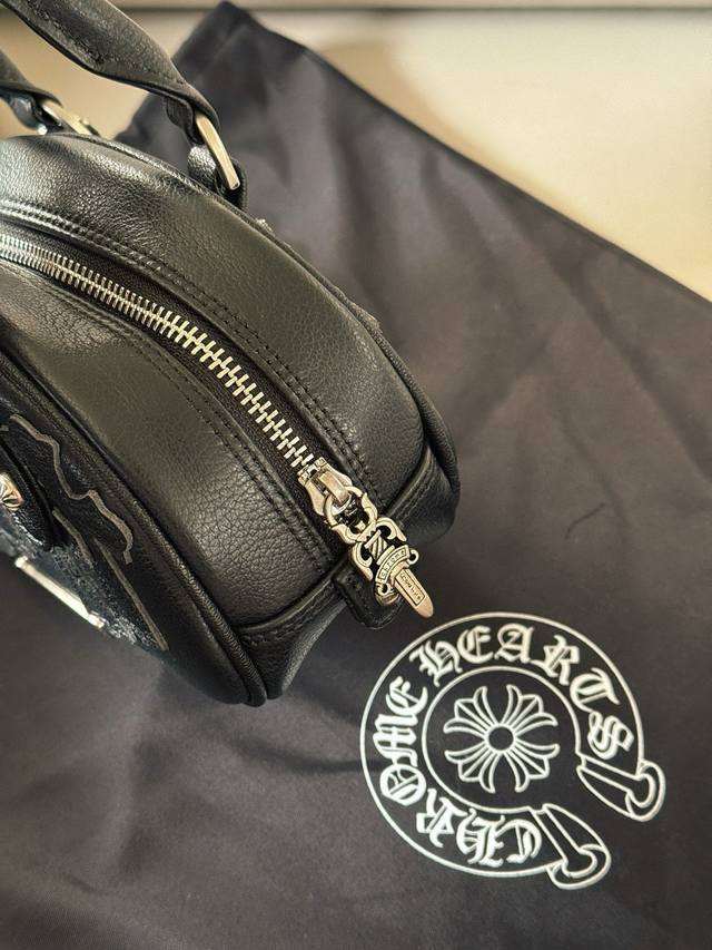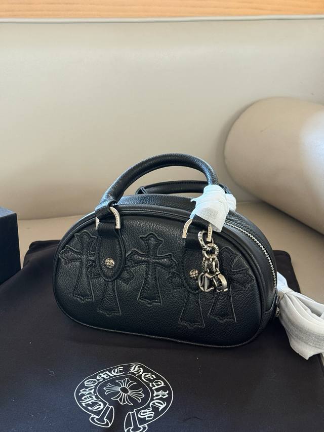 Comes with box, cowhide leather DDD Size: 20*13Cm DDD Chrome Hearts classic black bowling bag DDD Mini bowling bag is so versatile~ goes with everything DDD I fell in love at first sight DDD The hardware is so beautiful, the workmanship is very exquisite DDD