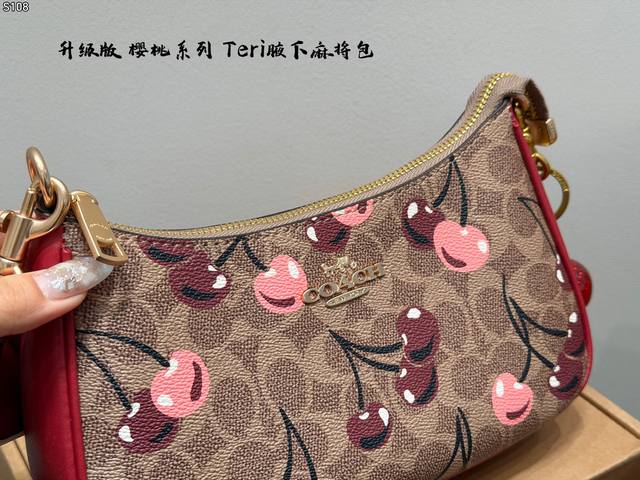 Airplane Box Ddd Upgraded Version with Cherry Charm Ddd Coach Cherry Series Teri Shoulder Bag is Here Ddd The Hottest Mahjong Bag in the Teri Series Ddd An upgraded version of the Mahjong Bag, the light color is especially easy to match with clothes Ddd It's the epitome of elegance and fashion~ It doesn't make you look shorter and looks good Ddd The color scheme is very trendy, and the size is just right #Coach Ddd Size 24 15Cm DDD