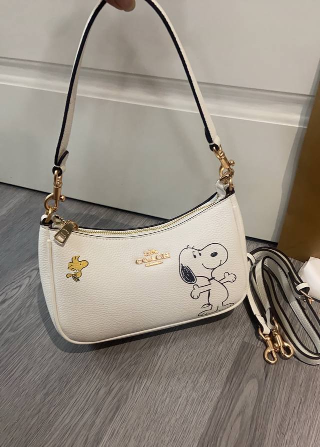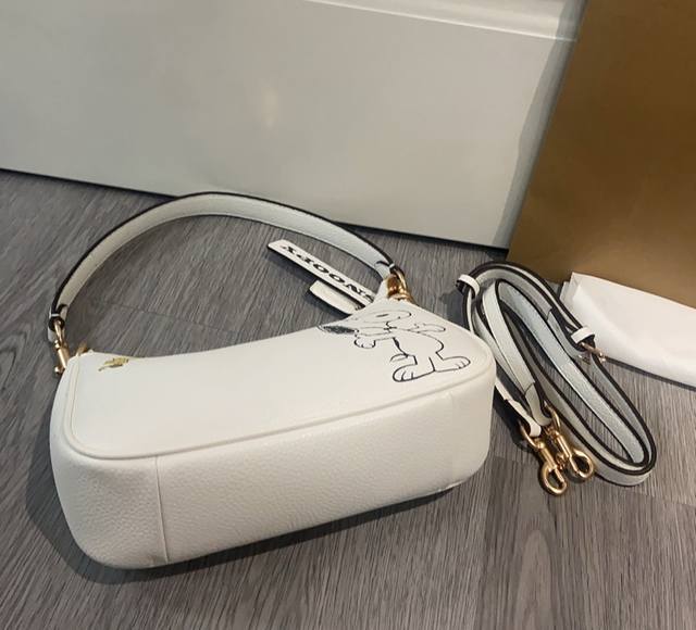 Coach. Cbj76 June new arrival: Snoopy co-branded underarm mahjong bag. Coach Japan outlet limited edition Snoopy, each one is adorable and super kawaii. Size: 25cm