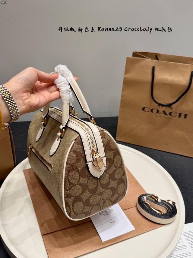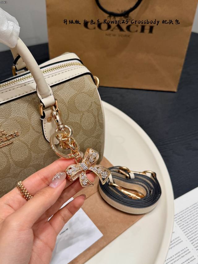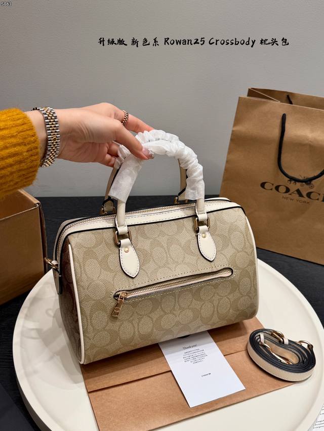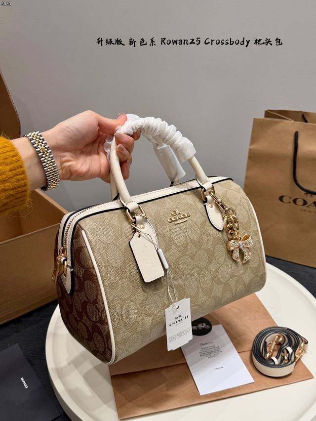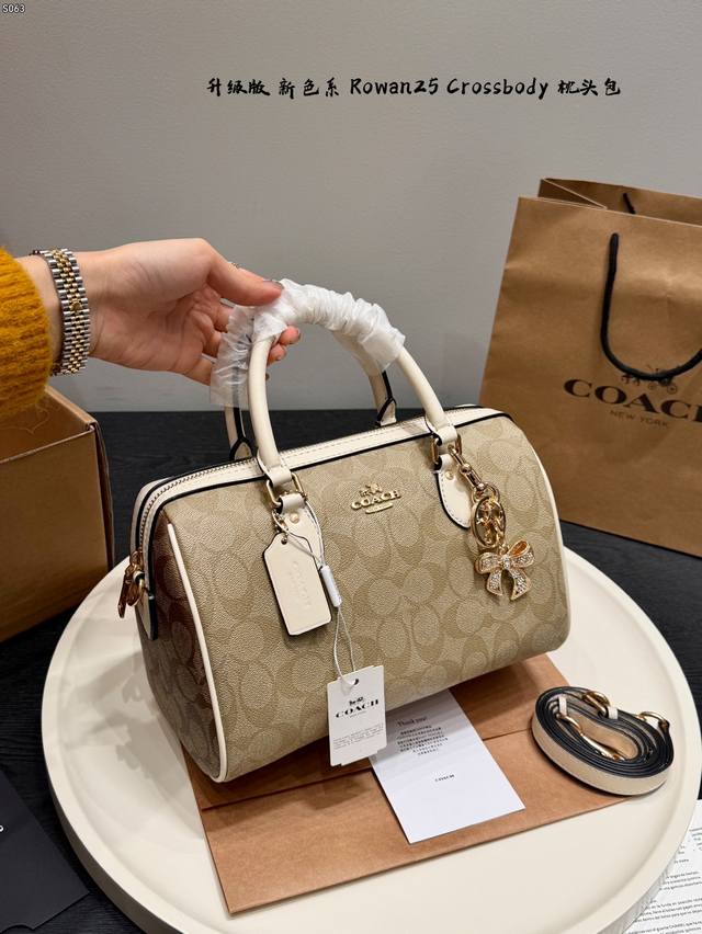 Gift Box Upgraded Version! With Charm! Size: 25*16cm Coach Boston Pillow Bag Handbag New Color Rowan Crossbody Classic and Timeless~ A small pillow bag, more delicate and cute, while still holding your phone and everyday essentials. Small size, big capacity~ Very practical~ Very versatile~ Not easily out of style~