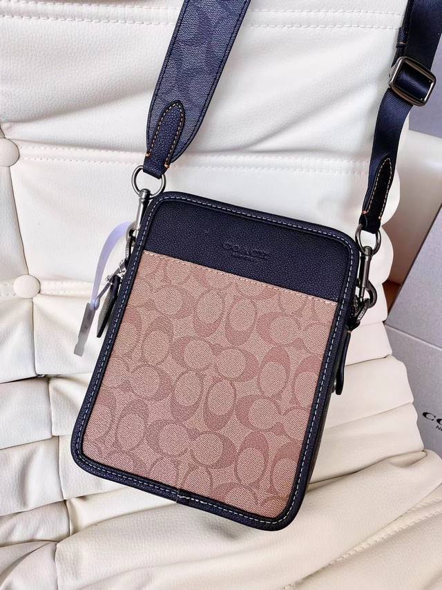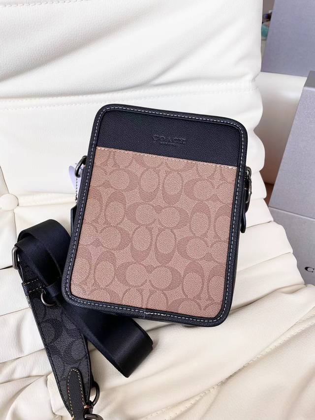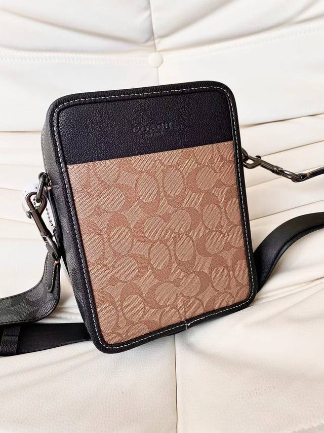 Original quality with full boutique packaging, classic new Coach Track men's shoulder/crossbody bag, approx. 17cm * 22cm * 6cm, brown floral print.