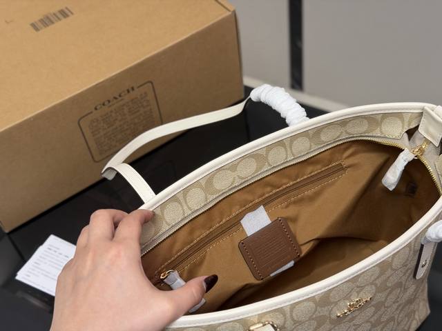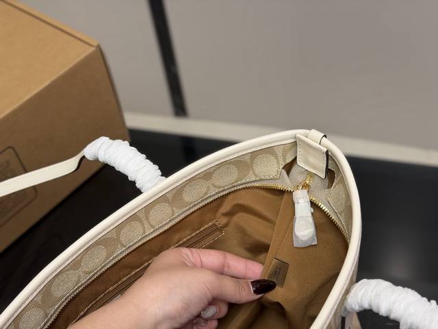 Replica with airplane box and zipper. Size: Bottom width 30cm, top width 40cm, height 35cm. Coach single-sided zipper tote bag/shopping bag. A super popular item that sells out in minutes! Matches various outfits. Suitable for all seasons! Search "Coach shopping bag".