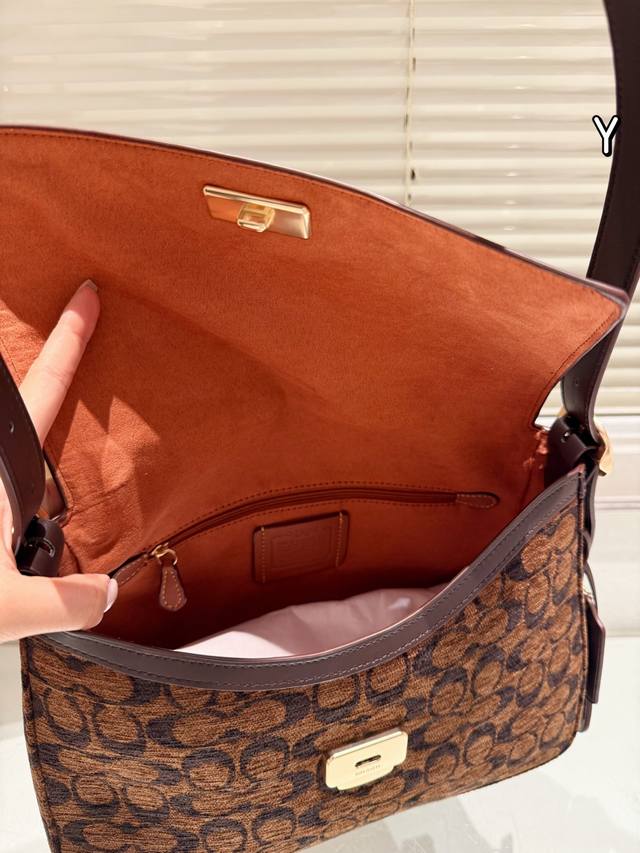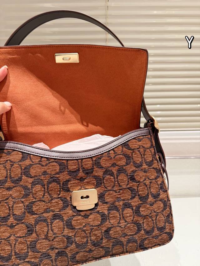 Coach Etta Large Shoulder Bag DDD The Coach Etta large shoulder bag features classic monogram canvas with brown leather trim, exuding a retro and elegant charm. Measuring 29.5 x 20.5 x 11.5 cm, it offers ample space, perfect for commuting and everyday use! An interior zippered pocket provides convenient organization, while the push-lock closure ensures security. The adjustable shoulder strap allows for stylish underarm or crossbody wear, adding a touch of sophistication to autumn and winter outfits. Lightweight, durable, practical, and fashionable, it's a must-have for everyday outings! DDD