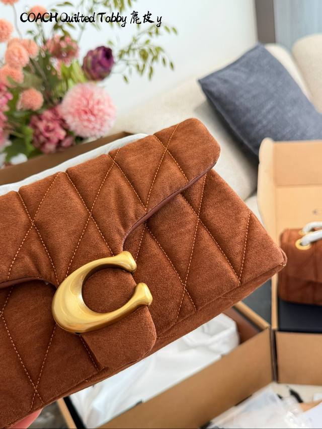 Coach Suede Tabby DDD Coach Tabby quilted chain shoulder bag exudes a chic and stylish vibe DDD Quilted checkered patchwork geometric visual effect adds a three-dimensional feel DDD The metal chain has a unique texture and is a stylish finishing touch DDD 20cm/26cm Comes with box DDD