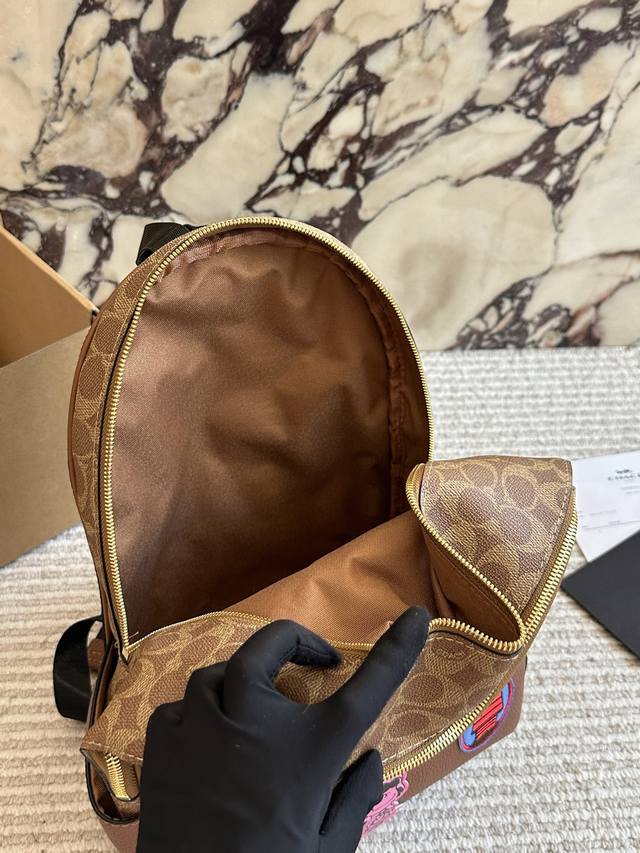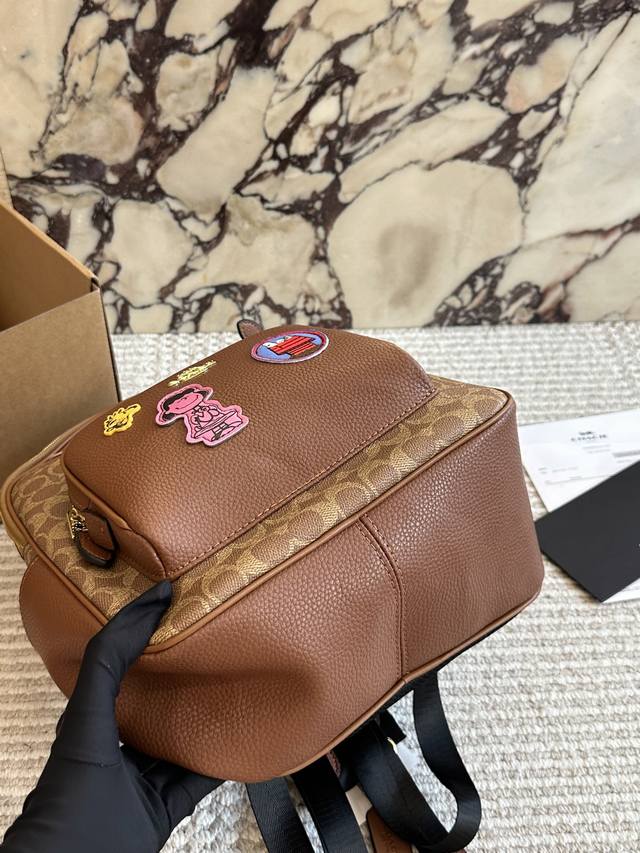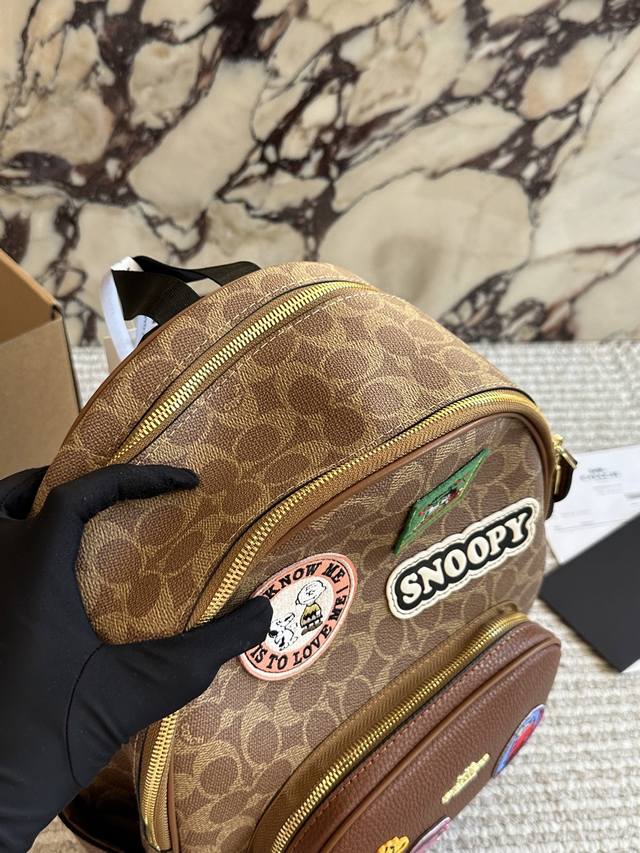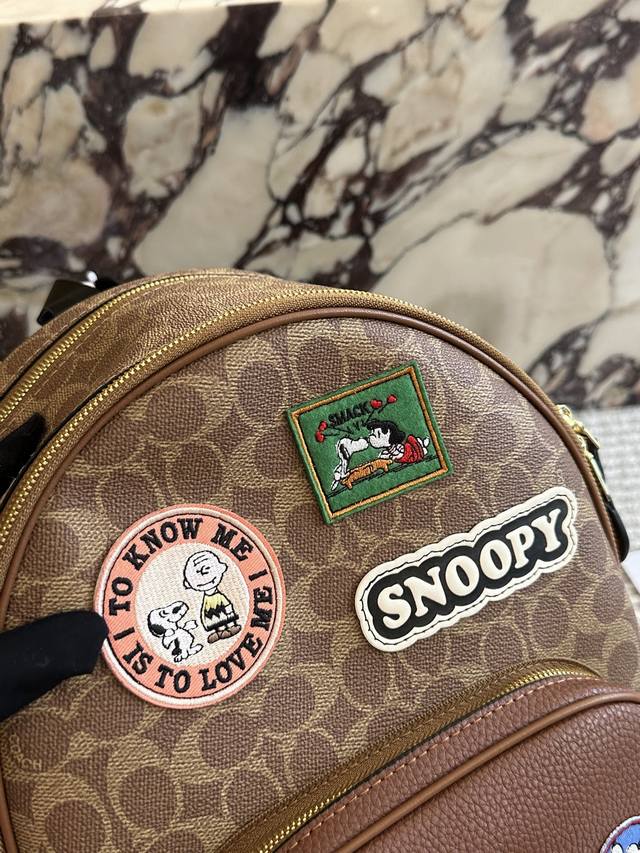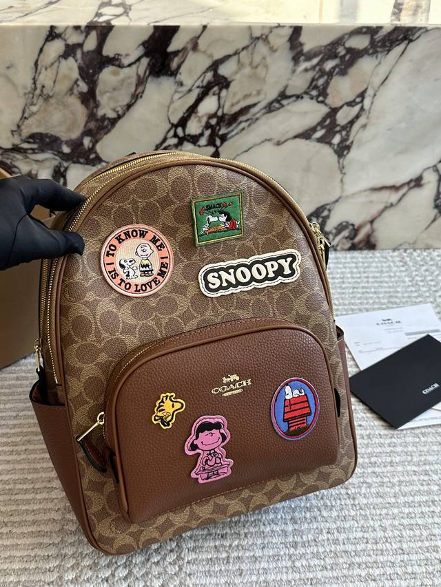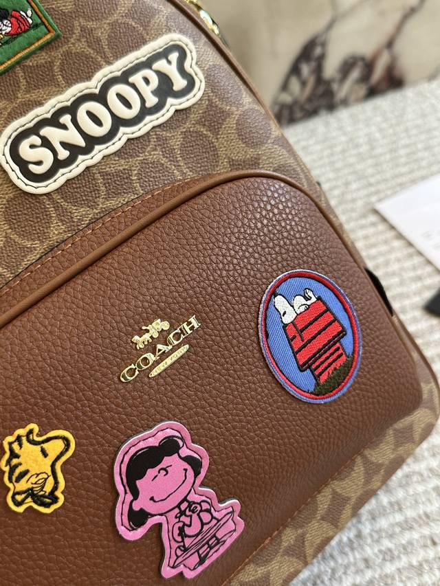 Coach's Playful Collaboration is Here! Double the Fun! Who can resist the adorable Snoopy? Coach and Snoopy have teamed up for a surprise collaboration, infusing childhood memories into fashionable items. Classic bag styles meet familiar figures like Charlie Brown and Snoopy, with cute patches and exquisite embroidery creating a unique spark. Whether it's a vibrant backpack or a practical tote bag, carrying it instantly unlocks childlike innocence and trendiness, adding a bright touch to your everyday outfits. Come and take this cuteness and style with you! 26 x 30 cm with box.