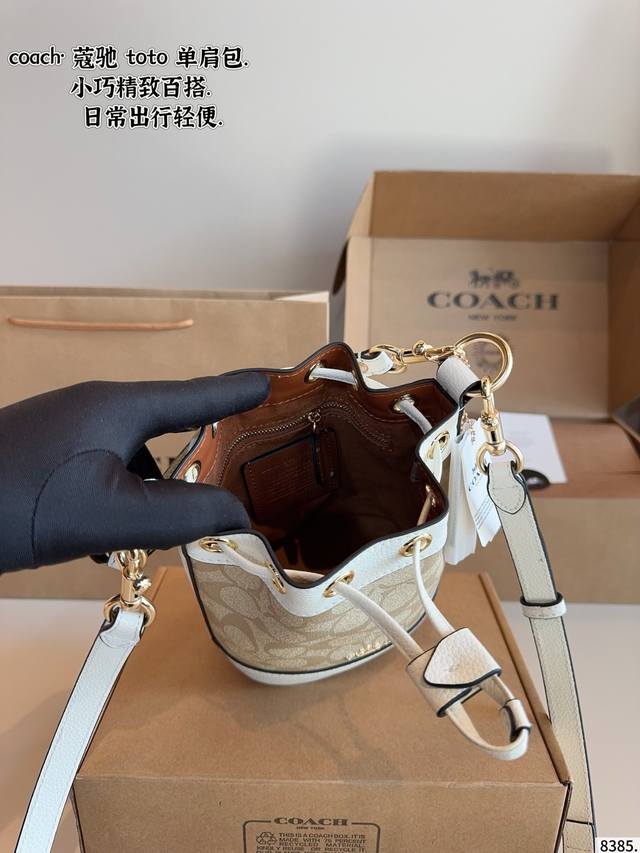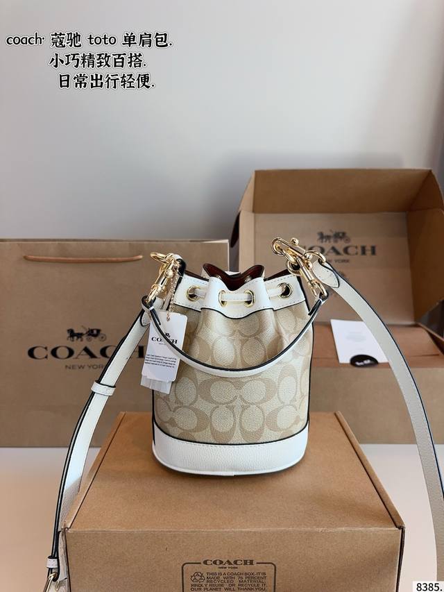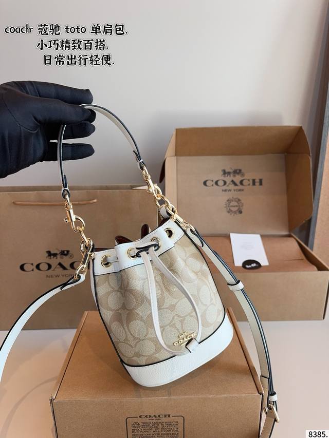 Comes with gift box. Coach's new October bucket bag. A casual and relaxed style, with a full and structured shape. Perfect for underarm or crossbody wear. A must-have for commuting. Search Coach. Bucket bag dimensions: 15*10*18cm.