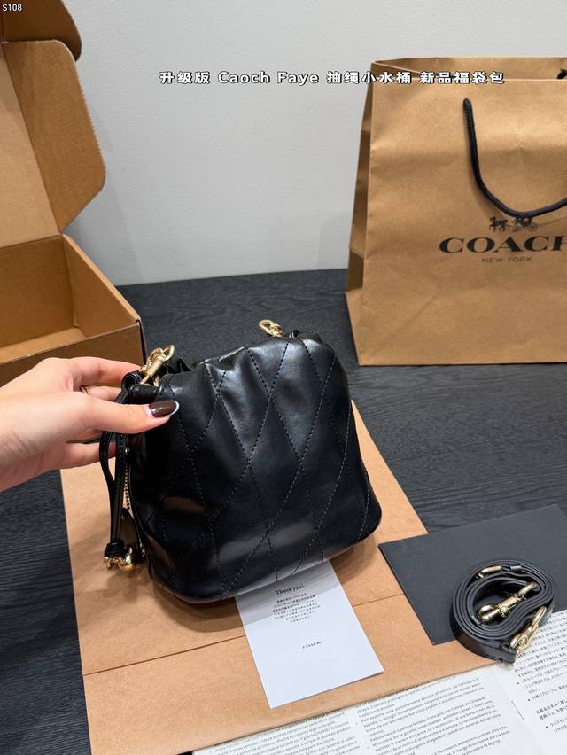 Comes with Gift Box DDD Upgraded Version DDD Coach Faye Drawstring Bucket Bag New Lucky Bag DDD Affectionately known as the "Cloud Bag" due to its unique cloud shape and soft touch, it has become a recent hot item thanks to its versatile style and practical design. DDD Core Design Highlights DDD Cloud Shape: The bag's rounded and full lines resemble a soft cloud, offering a very comfortable feel and giving a gentle and approachable impression. DDD Drawstring + Magnetic Closure: This is Faye's most unique design. The bag opening can be freely adjusted using the drawstring, allowing it to be left open or tightened into a "lucky bag" shape, making it convenient to access items while increasing privacy and security. DDD Multiple Shoulder Straps Design: Usually comes with shoulder straps of different lengths, allowing for hand-carrying, underarm crossbody, or single-shoulder carrying, easily switching between different styles, from gentle and ladylike to playful and cute. DDD Size: 18*16Cm DDD
