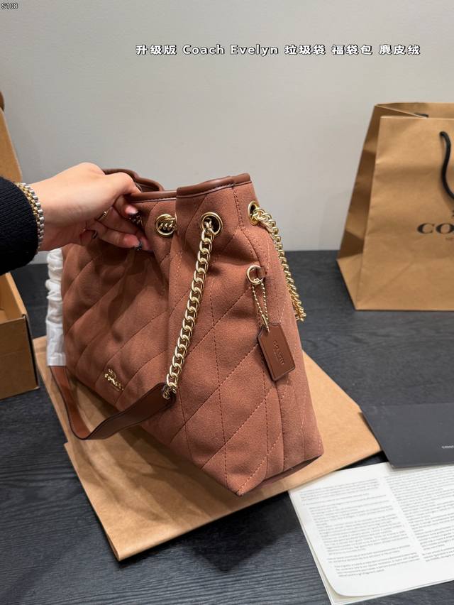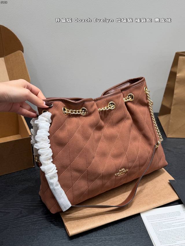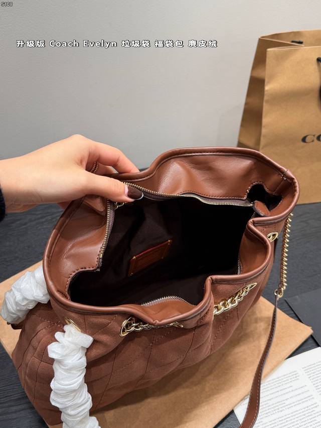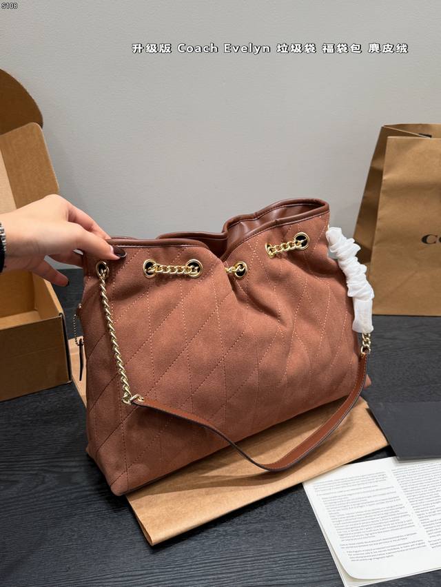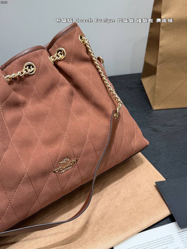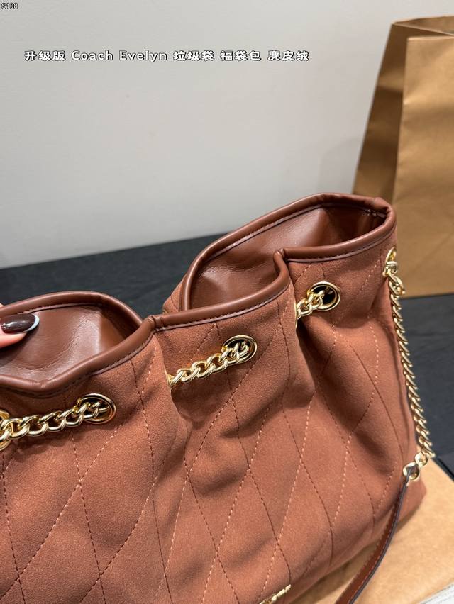 Gift Box Packaging DDD Upgraded Suede DDD Coach Evelyn "Trash Bag" Chain Lucky Bag DDD Aesthetically pleasing! The diamond quilted design exudes sophistication, while the gold chain and pleated details create a sweet, cool, and gentle look. Perfect for everyday commutes, easily fitting a laptop and water bottle. It pairs wonderfully with coats and suits, giving off an "expensive yet versatile" vibe. Classic styles never go out of fashion; Coach truly understands the art of understated luxury! DDD Size: 35X25Cm DDD
