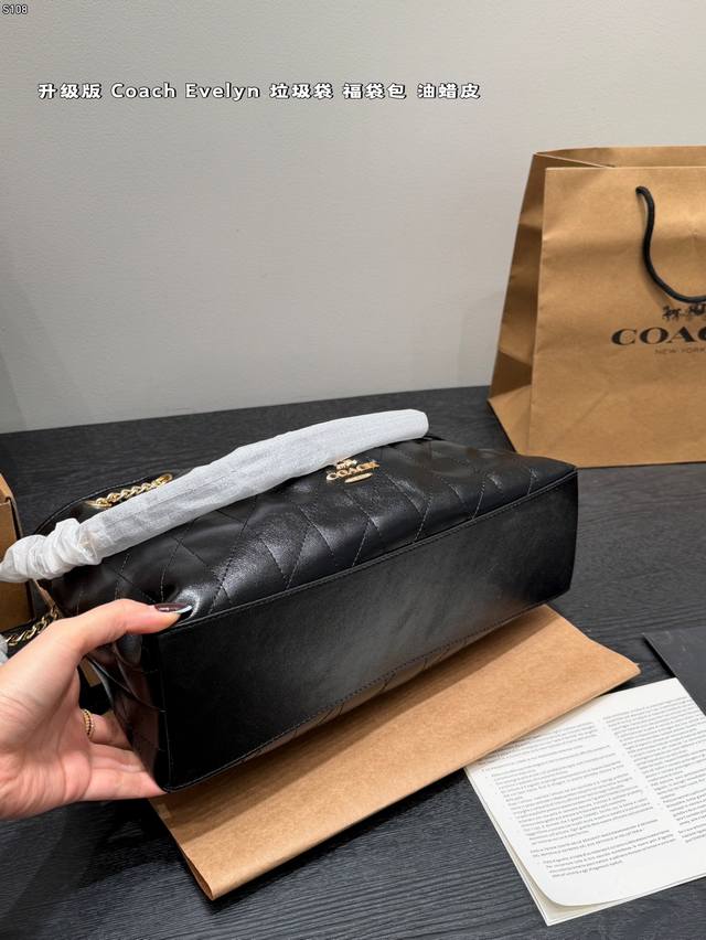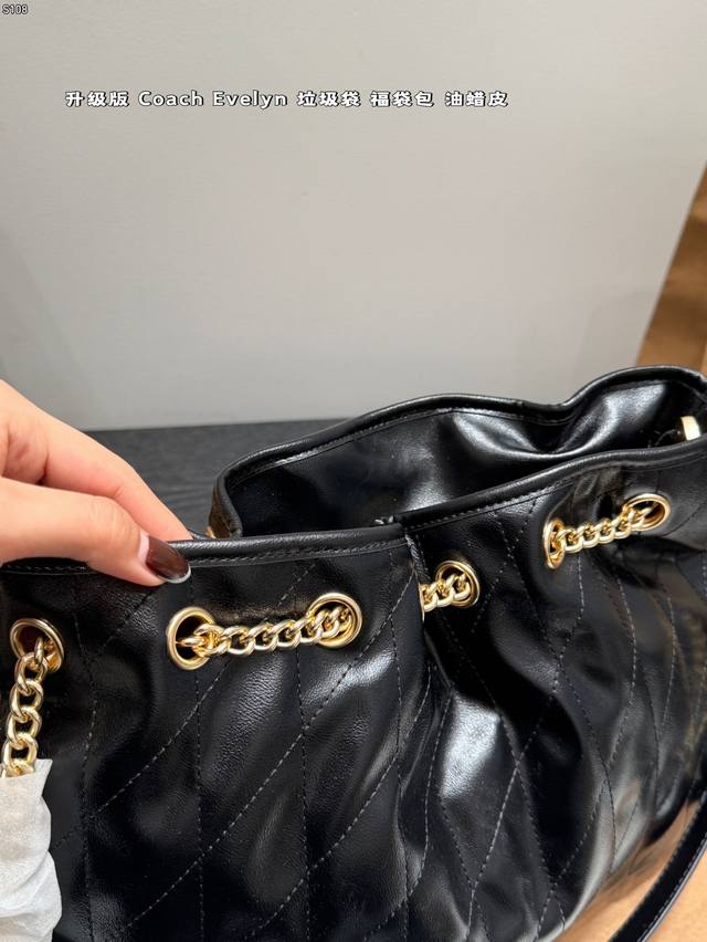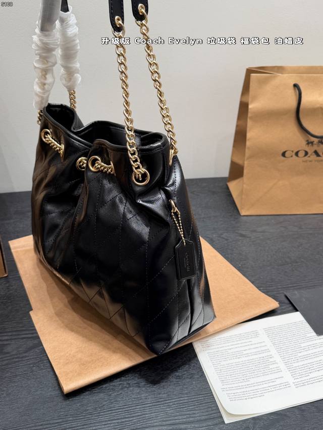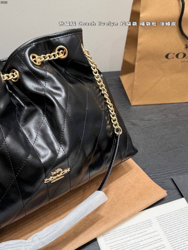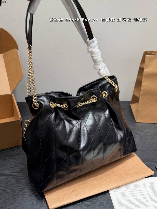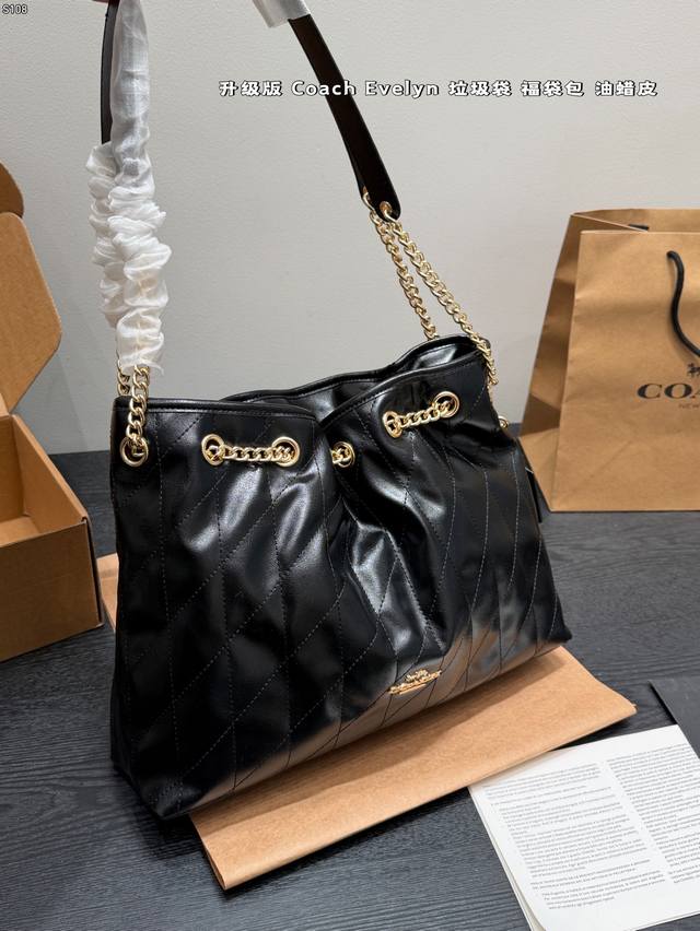 Gift Box Packaging DDD Upgraded Version DDD Coach Evelyn "Garbage Bag" Chain Lucky Bag in Waxed Leather DDD Aesthetically pleasing! The diamond quilted design exudes sophistication, while the gold chain and pleated details create a sweet yet gentle look. Perfect for everyday commutes, easily fitting a laptop and water bottle. It pairs wonderfully with coats and suits, giving off an "expensive yet versatile" vibe. Classic styles never go out of fashion; Coach truly understands the art of understated luxury! DDD Size: 35X25Cm DDD