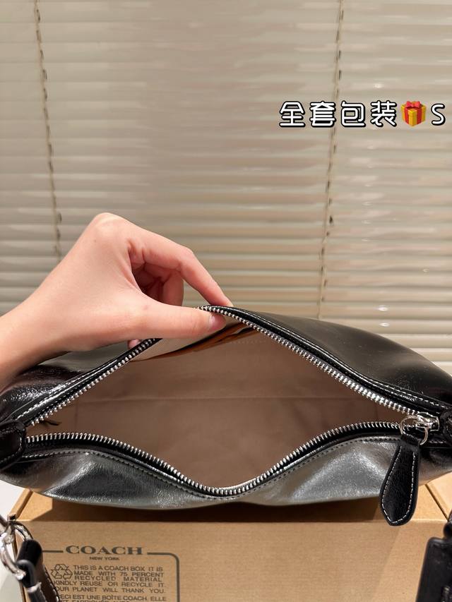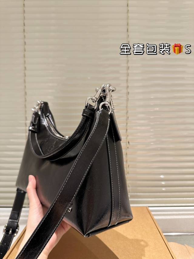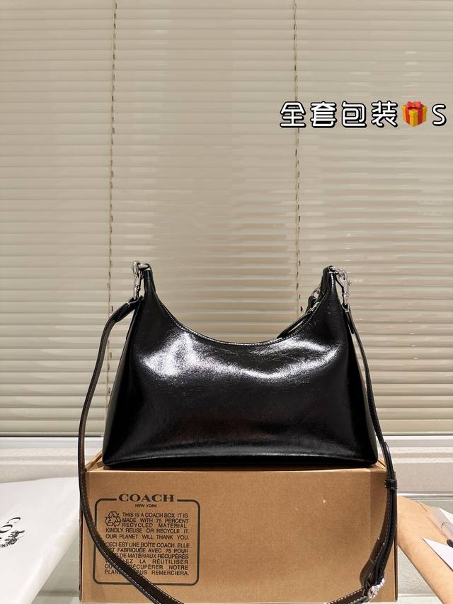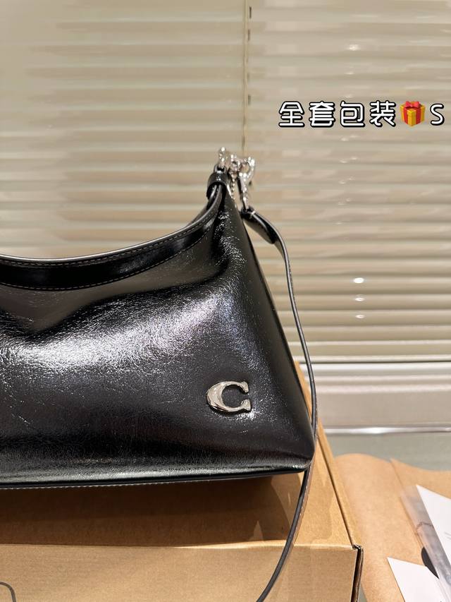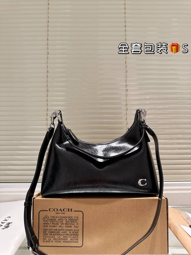 Replica Cowhide Leather Coach New Juliet Hobo Bag DDD Black Waxed Leather Full Zipper Dumpling Bag DDD Shiny Glossy Glaze, Presenting a Full Retro Sweet and Cool Feel DDD Summer Battle Bag Ready? DDD Size 32 18Cm DDD