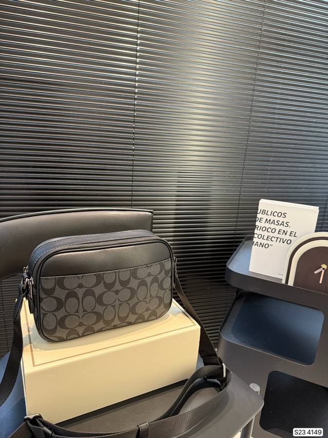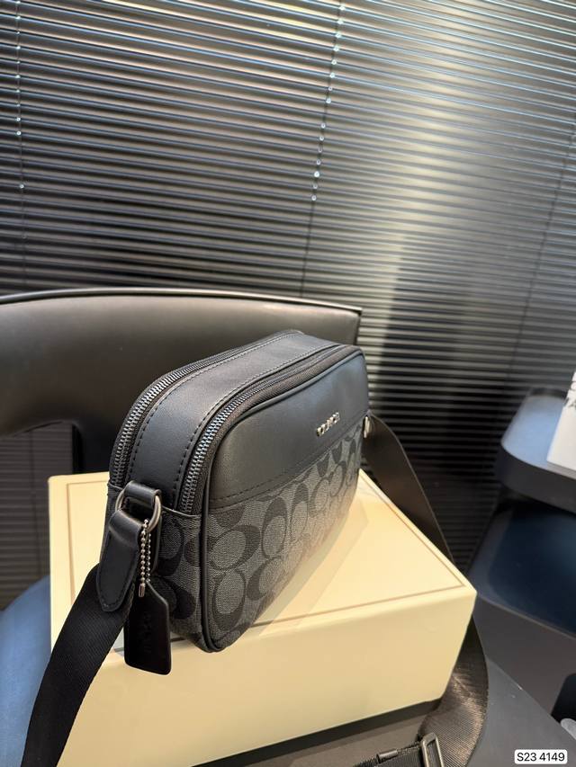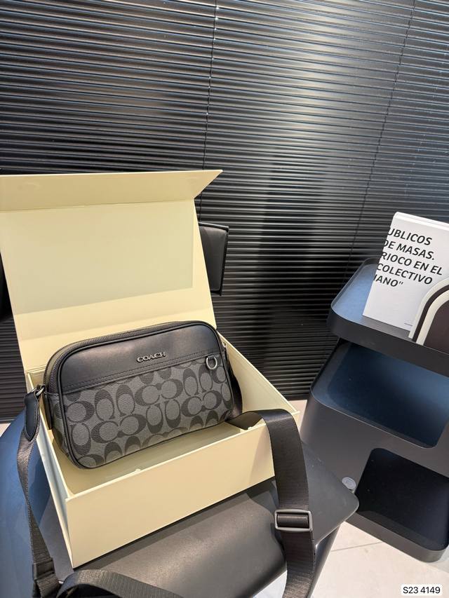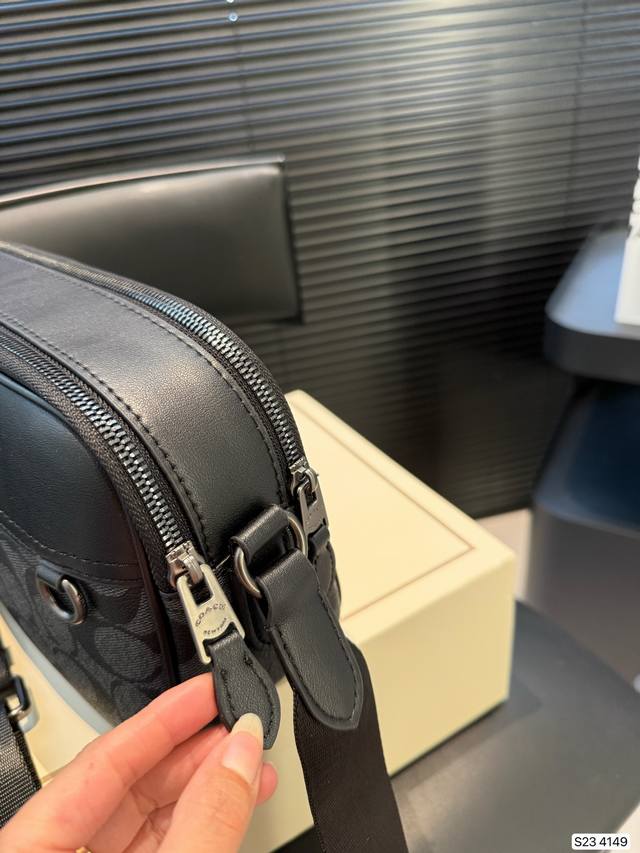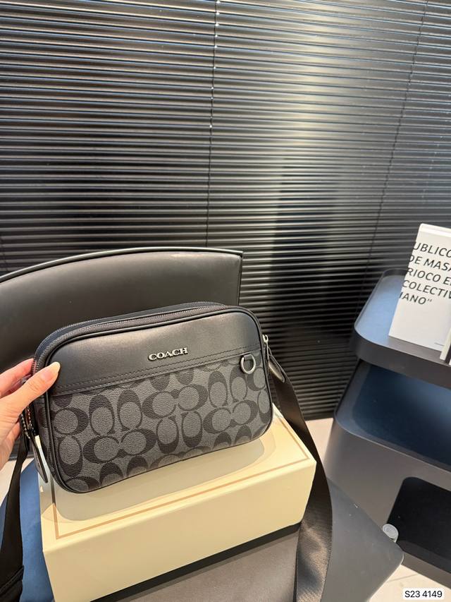with folding box Coach camera bag men's classic camera bag shoulder bag chest bag two large zippers two pockets, large capacity, stylish and casual appearance, very handsome for men, a must-have for trendy men. Now it is particularly popular for men to carry this kind of small camera messenger bag, many male stars check in for street shooting.