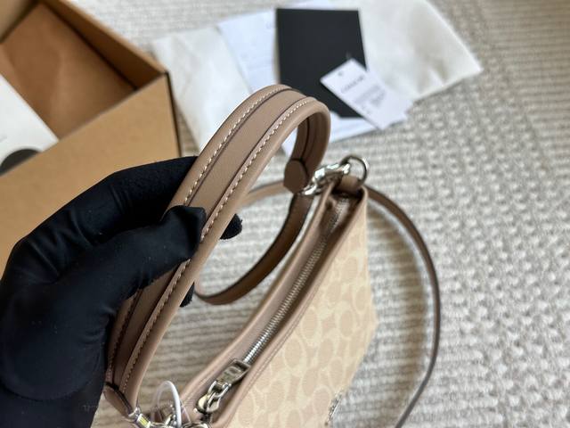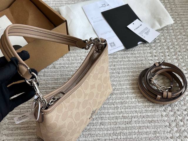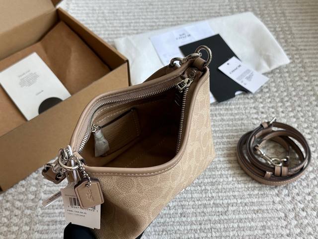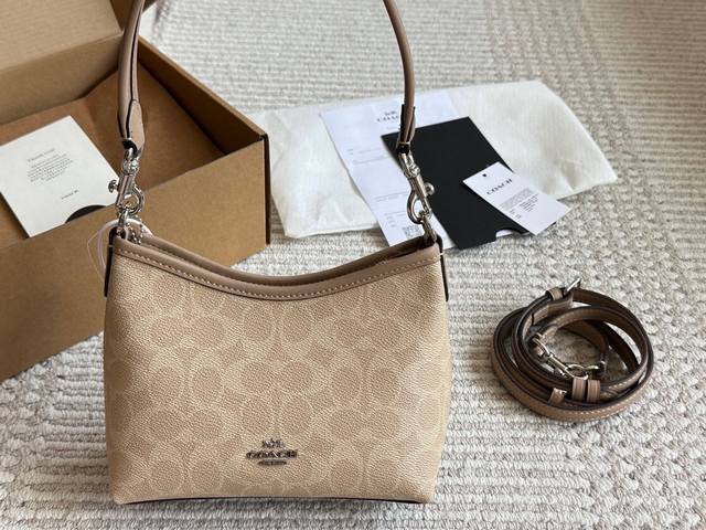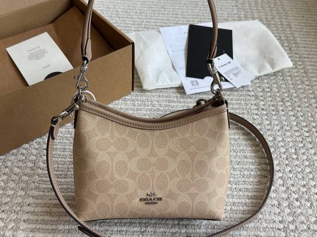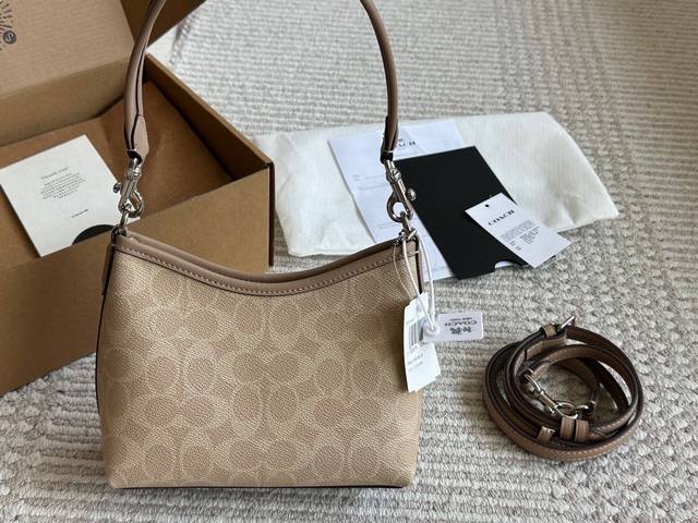 Coach. I didn't expect the mini hobo bag to be this cute. The mini hobo bag is so adorable. The small body still holds a phone. The shoulder strap can still be worn under the arm. The milk tea color is absolutely versatile. It's so cute! It's in a 20cm airplane box (pictured).