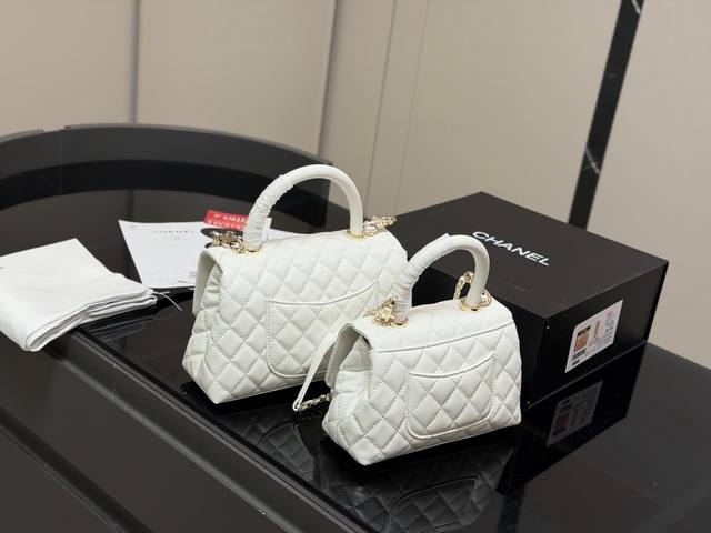 / Comes with a folding box Size: 20.13cm 23.14cm Chanel Coco Handle Handbag Grain