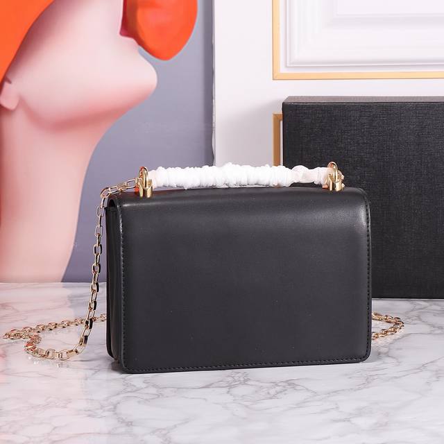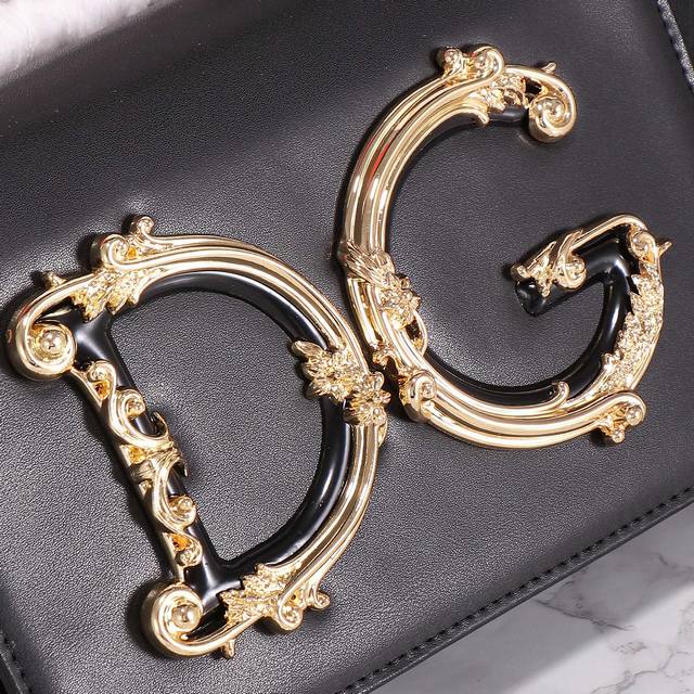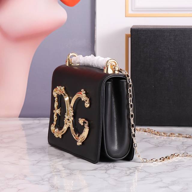 9 Restocked Dolce & Gabban Dg Girls Series Chain Crossbody Bag. From the Dg Girls series, this baroque Nappa leather crossbody bag features a metallic Abs material and a striking Dg logo. Suitable for any occasion, it's made of calfskin with a front flap, hidden magnetic snap closure, perforated chain, vintage gold-plated Nappa leather lining, and an internal logo tag. Model: 11019, Size: 21*5*13.5 DDD