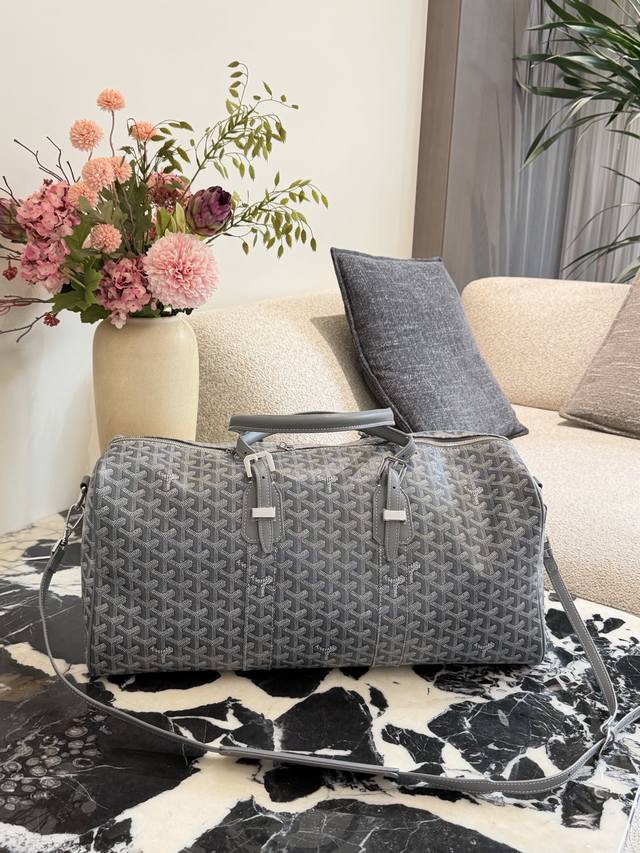 Top-quality original single-piece steel lock DDD Goyard Boston 50 grey travel bag DDD Goyard Boston 50 grey travel bag, classic monogram canvas + understated simplicity yet luxury. 50cm golden size, moderate capacity, suitable for short trips or gym workouts DDD