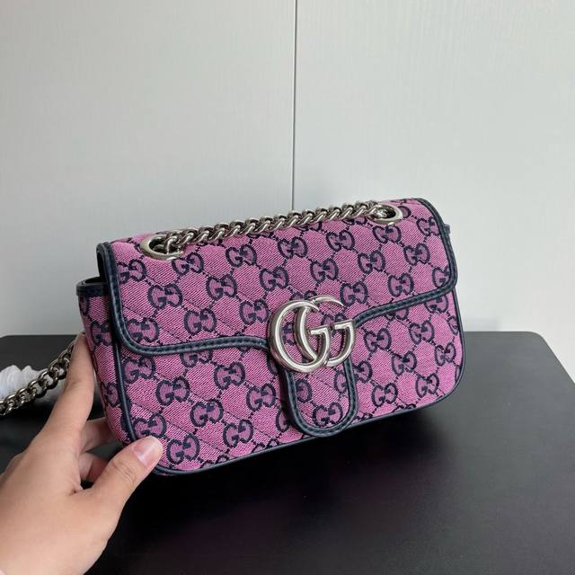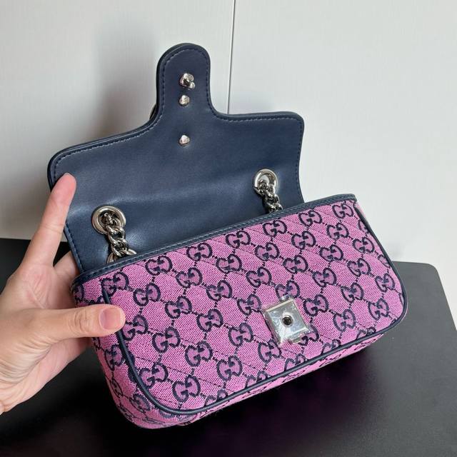 Medium size adopts buckle design, and the bag body continues to use the classic flap closure. The zipper interlayer inside is more retro and modern, and the more you look at it, the more you feel. Canvas material with blue cowhide, very light to wear.