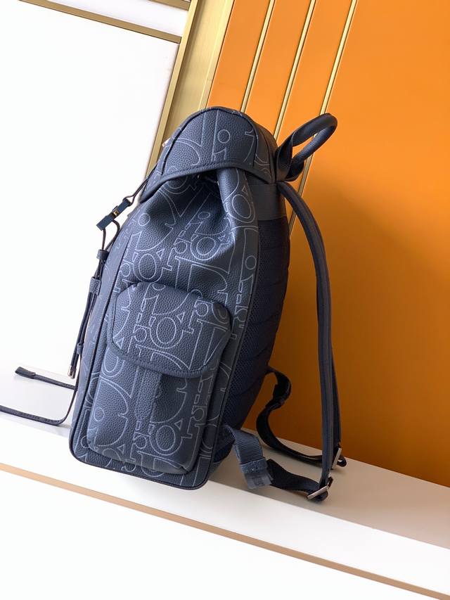 Backpack, 205 Blue Embossed Leather. Full Leather Dior - Latest Dior Saddle Backpack, Runway Style, Official Website Synchronized, Original Quality. Made of luxurious black grained cowhide, with an amazing feel. The front features leather trim on both sides adorned with the "Christian Dior" embossed logo. It includes a front saddle pocket and two side pockets. The top has a double-breasted closure with flap buttons. A novel and unique design, stylish and elegant, versatile and trendy. Perfect for street style and short trips. Dimensions: 34X44X16 DDD