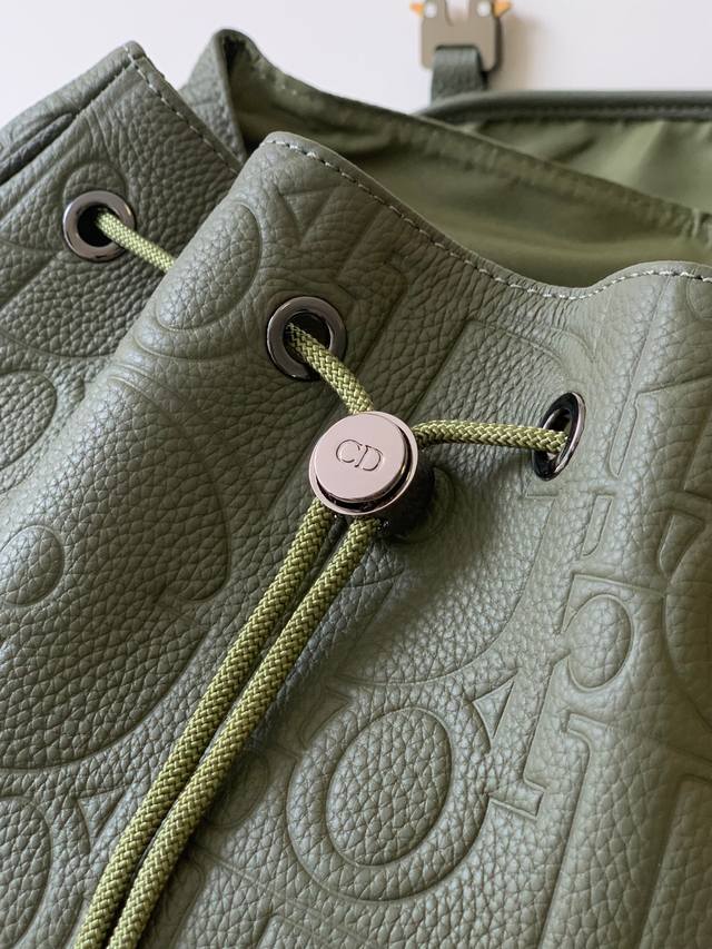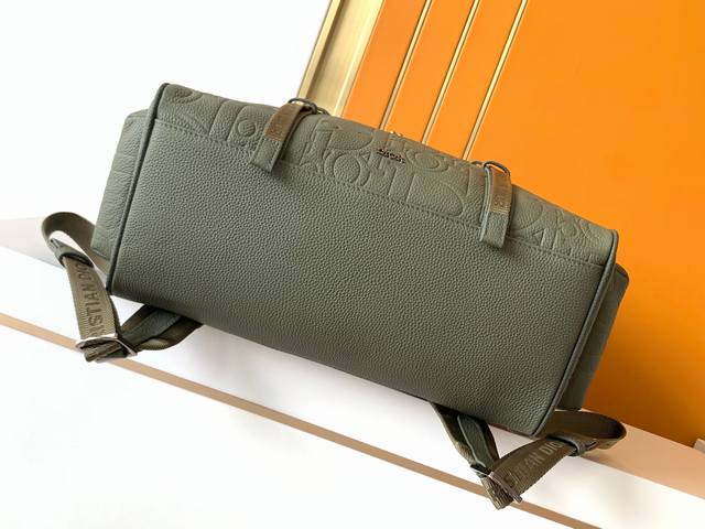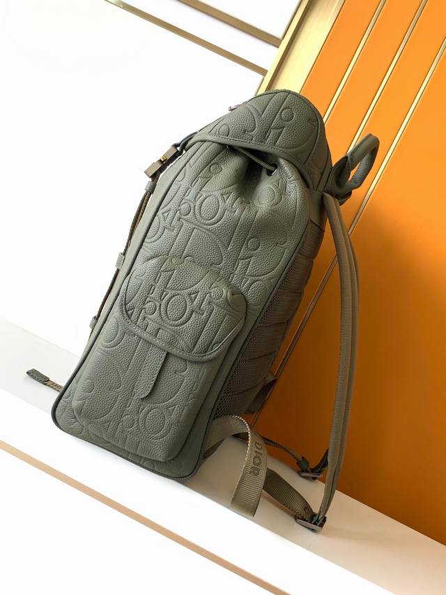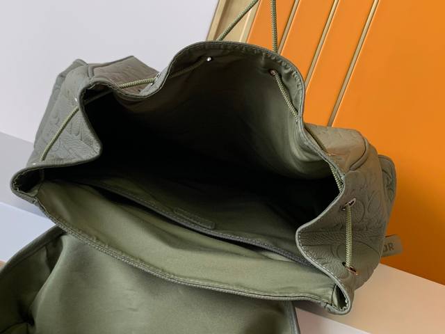 Backpack, 205 Green Full Leather. This is the latest Dior saddle backpack from the official store, a runway style, original quality. Made of luxurious black grained cowhide, it has an amazing feel. The front features leather panels adorned with the "Christian Dior" embossed logo on both sides. It has a front saddle pocket and two side pockets. The top has a flap closure with buckles. The design is novel, unique, stylish, elegant, and versatile. Perfect for street style and short trips. Dimensions: 34X44X16 DDD