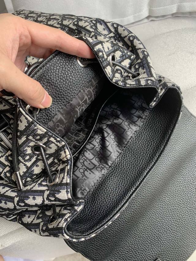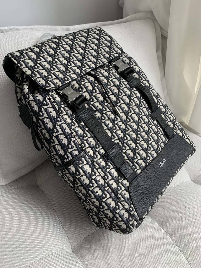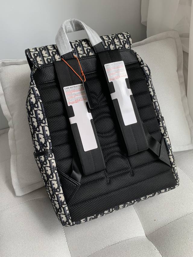 Dior Dior New Oblique Print Canvas Backpack Available Now! This backpack is incredibly stylish, with a clean and simple design. The retro monogram print and the iconic Dior logo in the center make it a head-turner. It's lightweight yet spacious, a must-have for any trip. Size: 31*42.5*14.5cm, Beige.