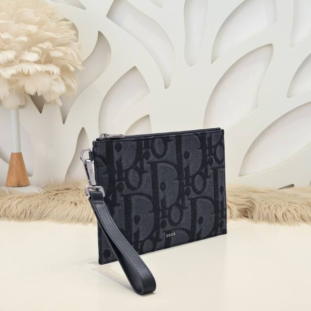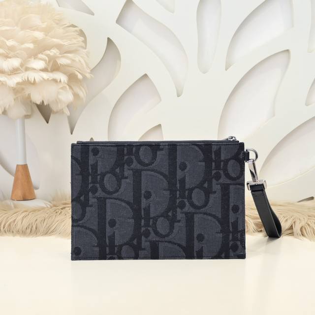 Dior - The latest clutch from Dior. The original quality is synchronized with the official website. This A5 clutch is an elegant and simple accessory. It is made of black oversized Oblique print fabric. It reinterprets the brand's classic pattern. The front is embellished with the Dior logo and is trimmed with grained cowhide. The zipper compartment has a mobile phone pocket and four card slots. It can be held by hand or put in a handbag. The style is novel, versatile, casual and practical. Size: 26.5 17.5Cm