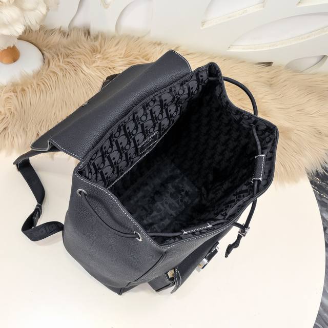 dior-The Latest Saddle Backpack From Dior Counters. The Original Quality Is Synchronized With The Official Website. The Full Leather Model Uses Luxurious Black Grained Cowhide Leather. The Leather Feels Soft And Awesome. The Fashionable Design Highlights The Saddle Style. The Front Is Decorated With A Logo. The Front Flap Saddle Pocket With Aluminum Buckle Can Store Daily Necessities For Easy Access. The Style Is Novel, Unique, Charming, Fashionable, Elegant, And Versatile. It Is Cool To Have It When Going Out For A Short Trip. Size 26.5 41 14Cm