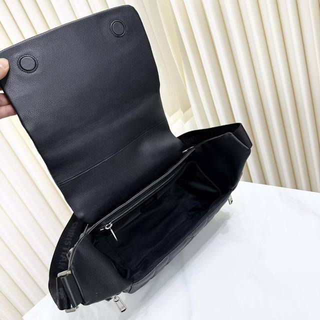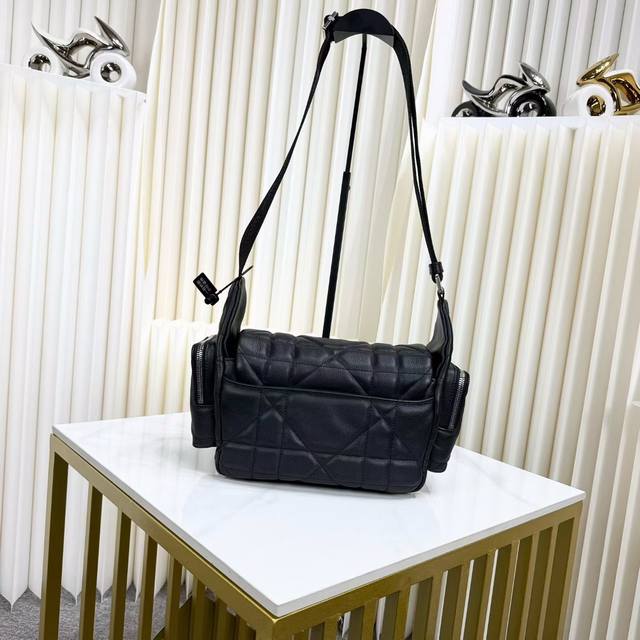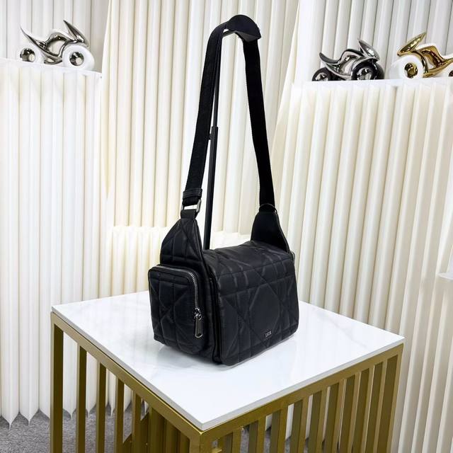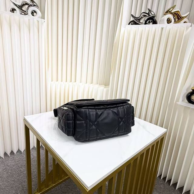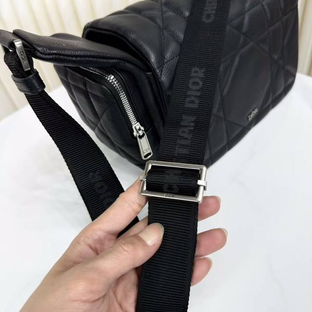 Highest quality, original, and authentic on the market. Guaranteed imported top-grain cowhide, no split leather or microfiber. This new winter camera bag is a practical piece with modern appeal. Crafted from black Maxicannage calfskin, it features the brand's signature pattern and is embellished with the Ior logo on the flap. A large compartment and side zippered pockets allow you to carry all your essentials. The adjustable shoulder strap allows you to carry this accessory on the shoulder or crossbody. Main fabrics: Calfskin and technical fabrics. Technical fabric and calfskin lining. Main compartment with magnetic flap. Interior slip pocket. Two zippered side pockets. Back slip pocket. Adjustable nylon jacquard shoulder strap embellished with the Christian Dior logo. Brass Dior logo on the front with an antique silver finish. Interior embossed Dior signature. Includes protective pocket. Made in Italy. Dimensions: 31 x 15 x 15 cm (length x height x width). The main compartment is ideal for a phone, cardholder, and sunglasses. The side pocket is suitable for placing wireless headphones